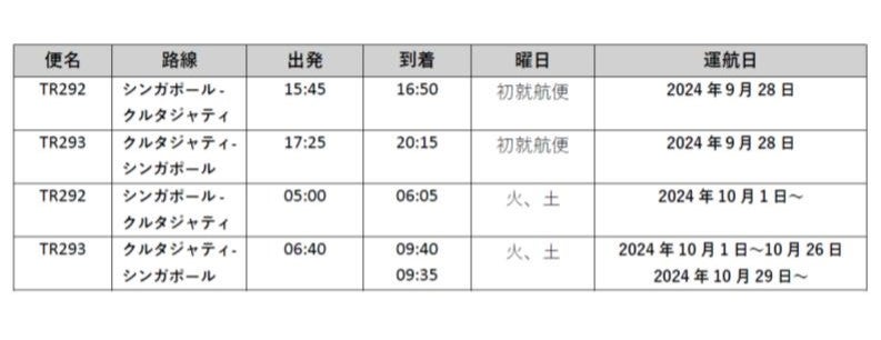 フライトスケジュールの詳細については、下記をご参照ください。スクートのE190-E2と新しい就航都市であるクルタジャティとマラッカの画像はこちらからご覧いただけます。