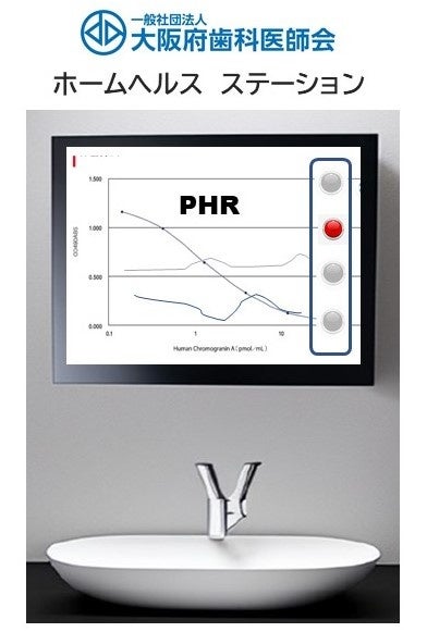唾液のバイオマーカーのセンシング、スマートウオッチによる全身状態のセンシング、この2点について毎朝のブラッシング時に、AIによって分析された日々の結果が洗面台のミラーに映し出され、異常値を示すアラームで知らせる。未来の健康管理を提示します。