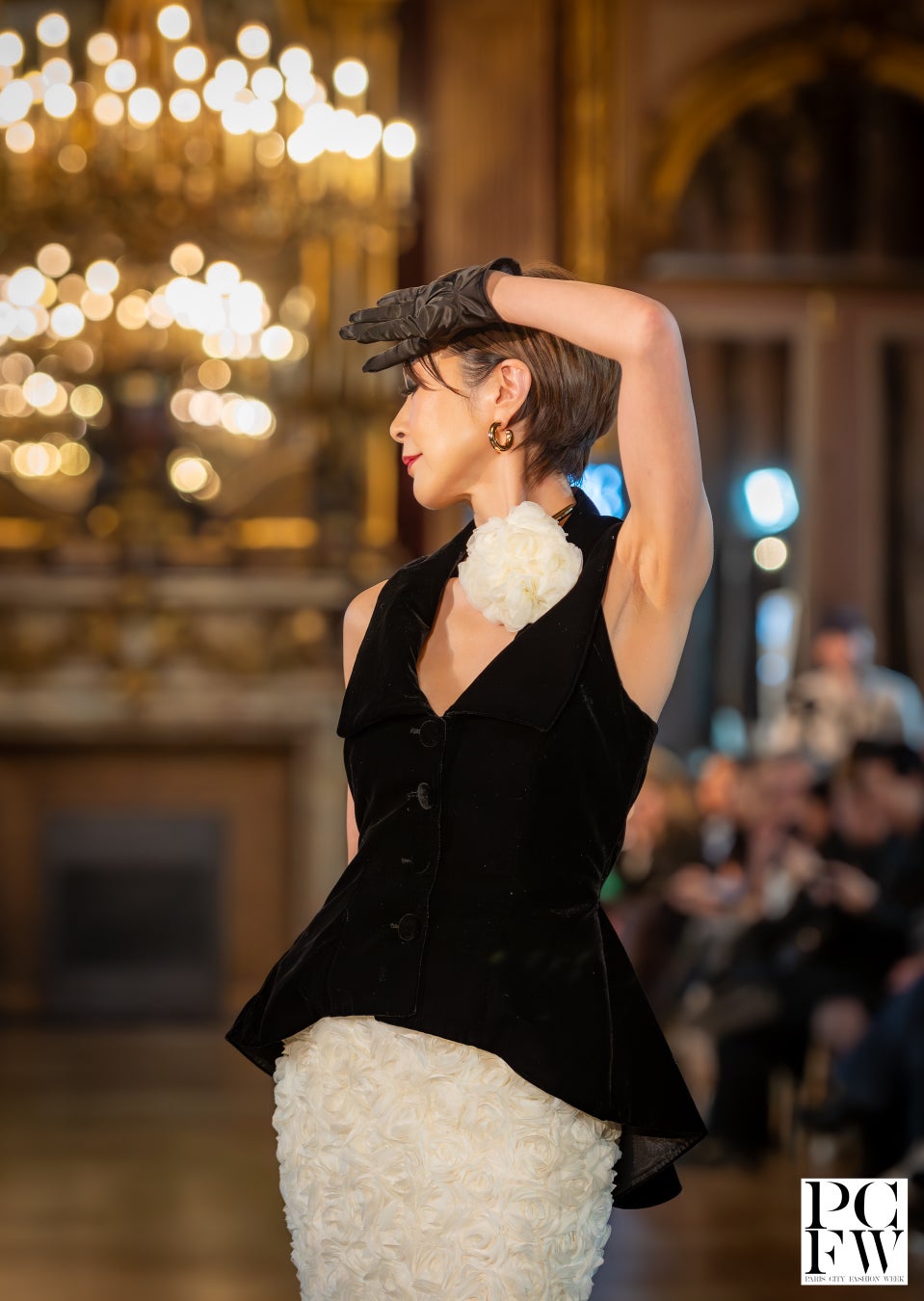 世界にたった1枚の自分のために作られたドレス纏い、JAPANESE TOP MODELとして、パリの一流ホテルでランウェイを歩く特別な舞台をご用意しました。