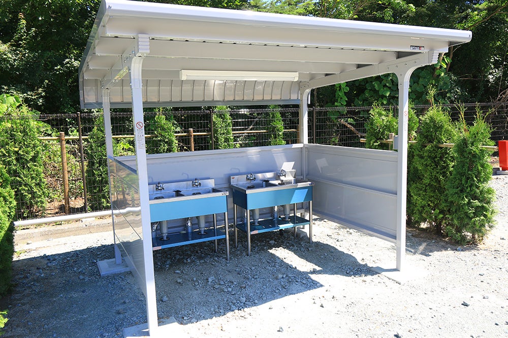 サイトのそばに炊事場が2つ併設されており、水が必要になったときや洗い物ですぐに利用できます。
