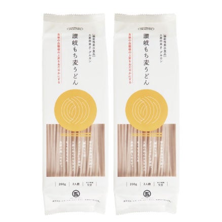 「讃岐もち麦うどん」は、香川県善通寺市産のもち麦「讃岐もち麦ダイシモチ」を練り込んだ、こだわりの細麺です。製法には包丁切りカッターを採用し、もっちりとした食感と、ほんのり広がる麦の甘みを引き出しました。さらに、“大麦由来β-グルカン” (※1)が含まれた機能性表示食品としても注目されています。ゆで時間はわずか5分で、和洋中のアレンジにも幅広く対応できます。日々の食卓に、健康とおいしさを両立してお届けできる商品です。