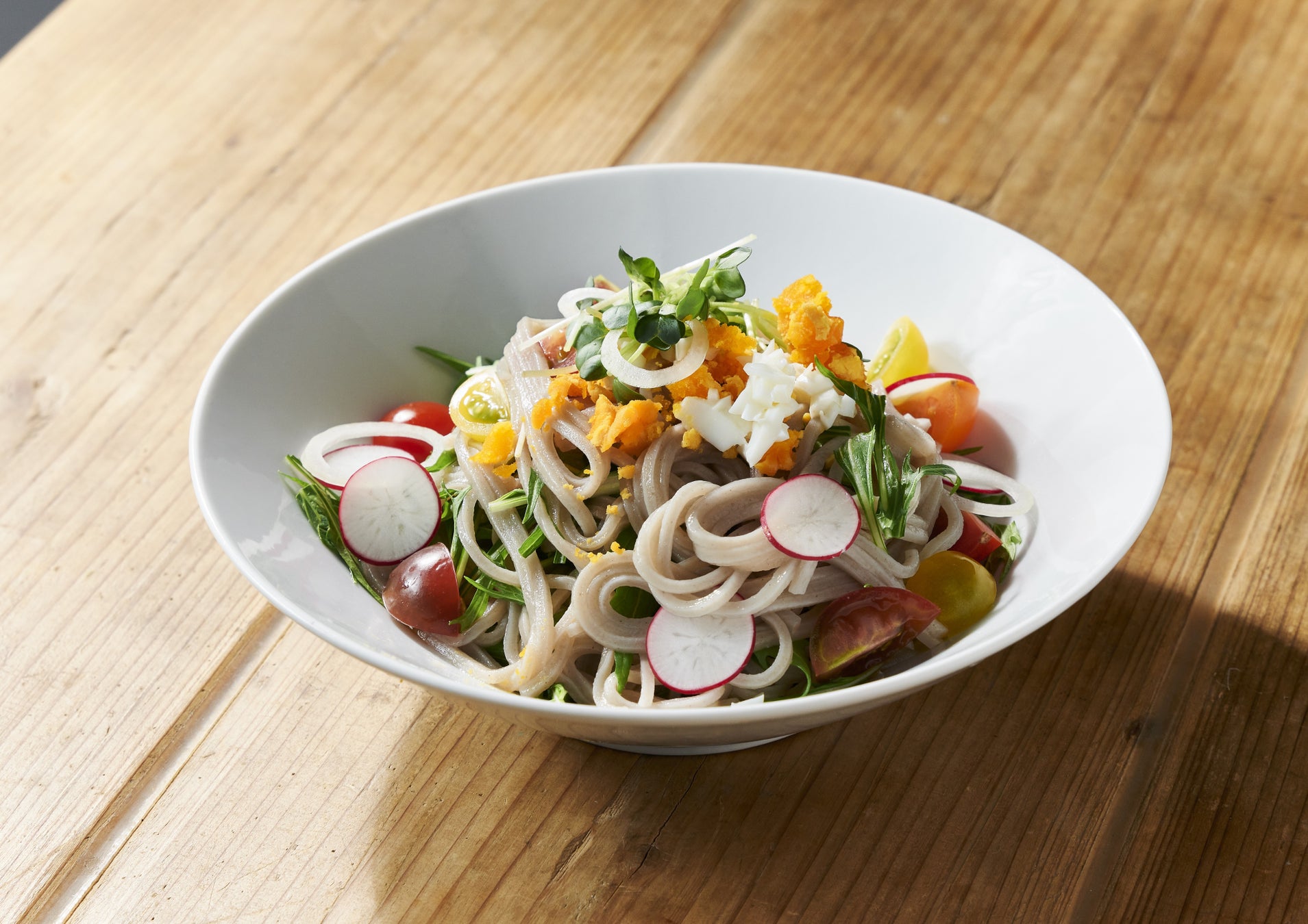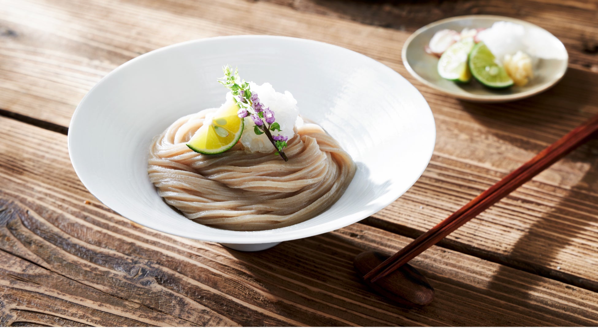 私たちは、業界の枠を越えて連携する「融業(ゆうぎょう)」に取り組んでいます。これは、異業種と協力しお互いの強みを活かして新たな付加価値を生み出す取り組みです。その一つとして、地元善通寺市産のもち麦「讃岐もち麦ダイシモチ」を約25%練り込んだうどんを開発しました。「伝統ある讃岐うどん」と「もち麦の特性」を融合させることで、地域資源の新たな可能性を引き出し、新たな市場への一歩を切り拓く製品が誕生しました。今後も地域に根ざし、価値ある食の提案を続けてまいります。