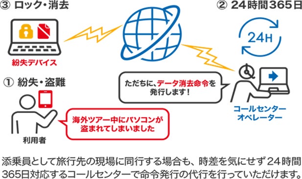 TRUST DELETE Biz+は、テレワークやハイブリッドワーク等の柔軟な働き方で高まるパソコンの盗難・紛失時に遠隔から強力なロック・データ消去を実行することで、第三者へローカルデータが流出することを防止する安心と実績のリモートワイプ製品です。機種メーカーを問わずに利用可能で、 24時間365日対応の命令発行代行サービスにより、事故発生時も管理者に依存せずデータ消去を実現できるサービスとなっています。