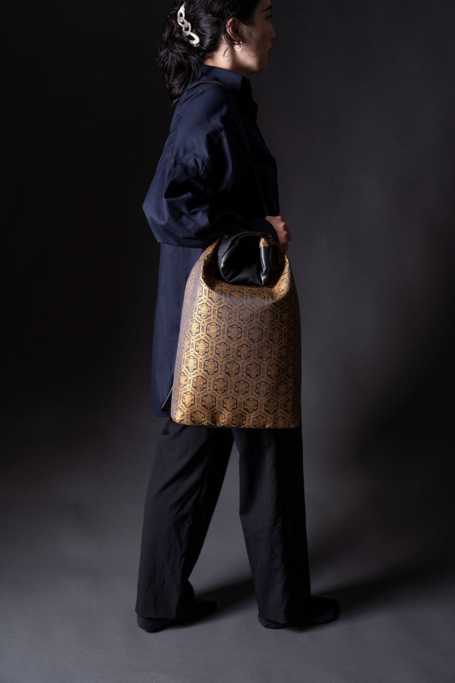ZANPUPは、広島ゆかりの金襴織物の残反・残布とクリエイティビティを融合し、伝統素材を日常へとつなぐアップサイクルバッグを提案しています。