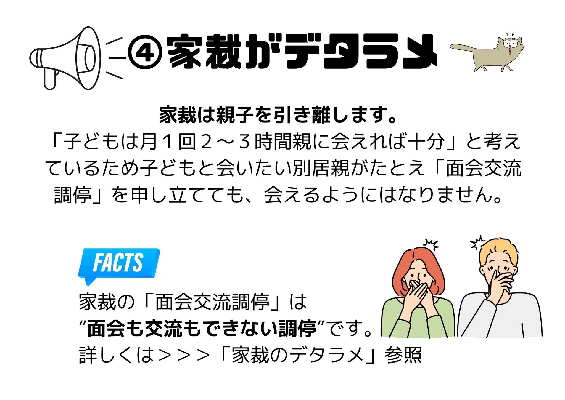 例えば、「家裁が親子を会わせない」問題です。