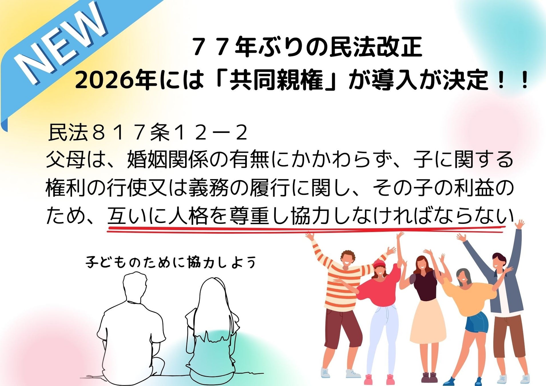 今回は77年ぶりの民法改正「共同親権導入」の決定を受け、共同親権導入で特に重要と思える3つの提案を追加しました。