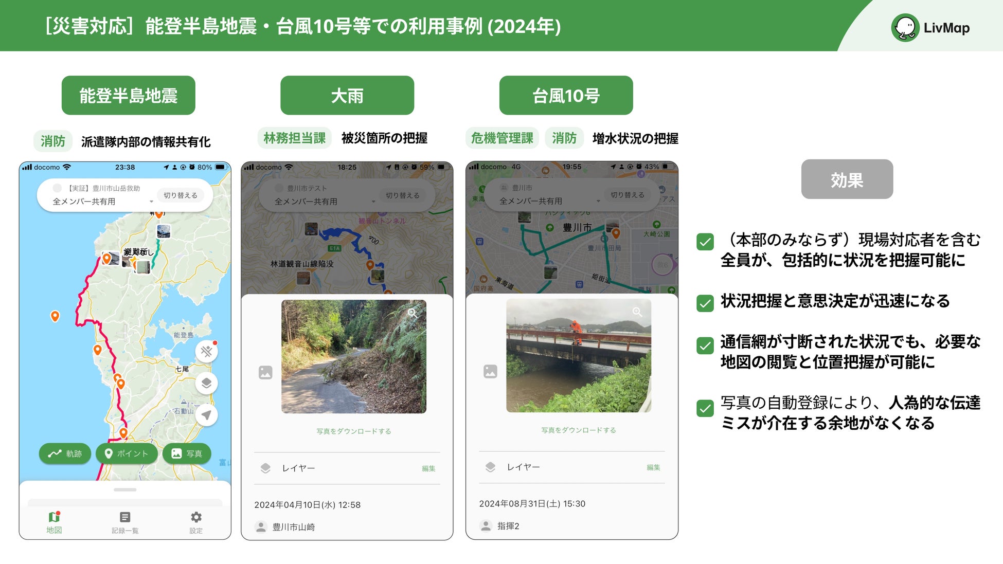 ◼︎ 災害時に LivMap で実現できた状況把握と迅速な意思決定