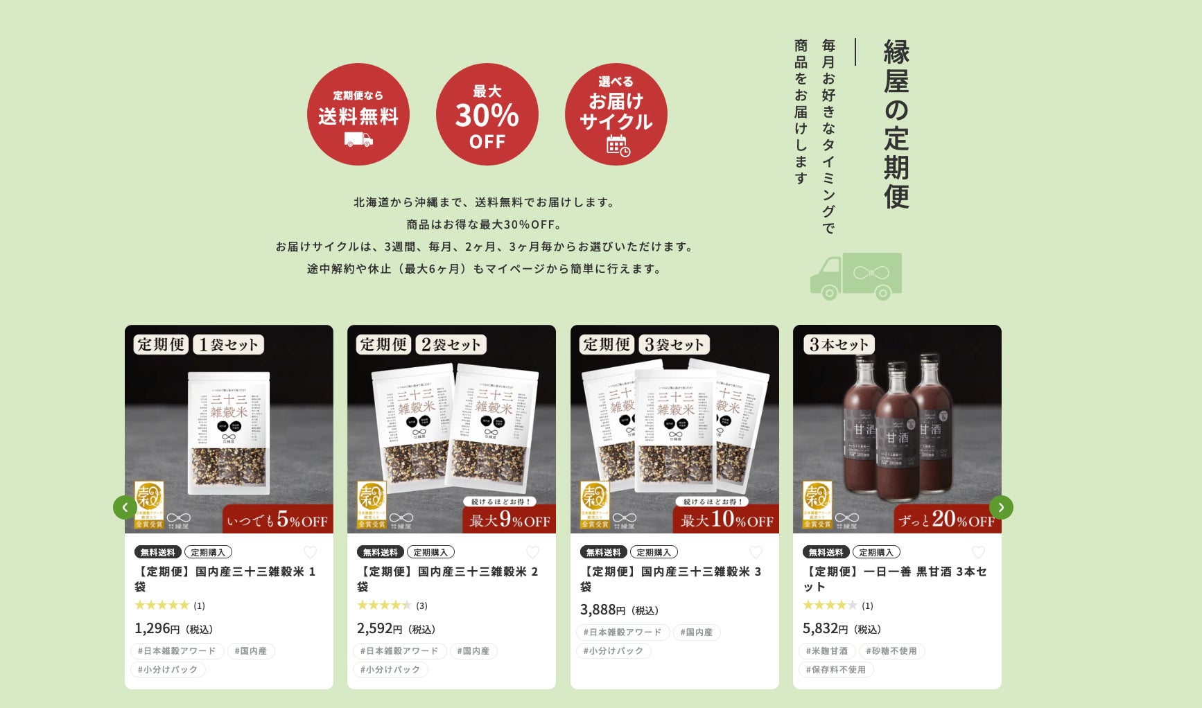 【雑穀本家 縁屋】のECサイトでも、これまで定期便と通常購入の導線が分かれており、はじめての方にとって分かりづらい構成が課題となっていました。