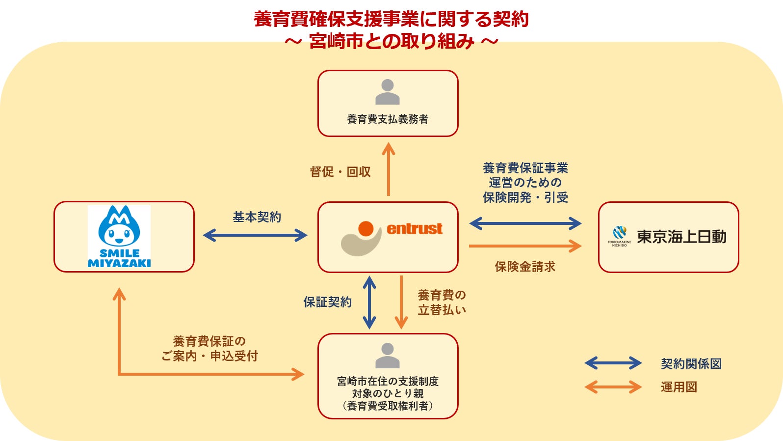 株式会社イントラスト(本社:東京都千代田区、代表取締役社長:桑原 豊、以下「イントラスト」)は、東京海上日動火災保険株式会社(本社:東京都千代田区、取締役社長:城田 宏明、以下「東京海上日動」)と開発を進めていた自治体養育費保証モデルについて、この度、全国で初めて宮崎県宮崎市(市長:清山 知憲、以下「宮崎市」)と「養育費確保支援事業に関する契約」を締結し、2025年4月1日より運用開始いたしました。