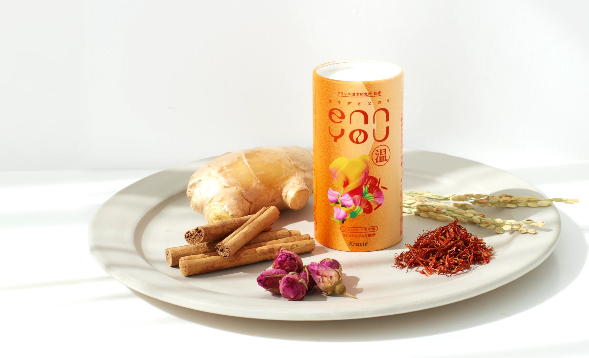 このたび取り扱いを開始する『enn you(エンユー)』は、クラシエ漢方研究所が監修した、からだの巡りやバランスに着目したノンカフェインの和漢ドリンク。