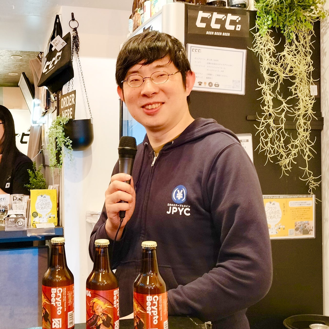 JPYCの実店舗での決済を皆さまにご体験いただけるということで、非常に嬉しく思います。本日はJPYC決済の場合、クラフトビールの「Crypto Beer #04」を通常価格から2%引きでご購入いただけますので、ぜひ活用してみてください。これからJPYCの認知度が高まり、利用可能な店舗が増えていくと良いなと期待しております。本日はよろしくお願いいたします!