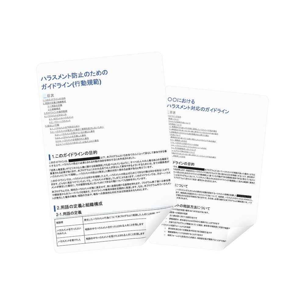 ハラスメントを未然に防ぐ「行動規範」および、発生時の対応を定めた「ガイドライン」の制作支援を行います。