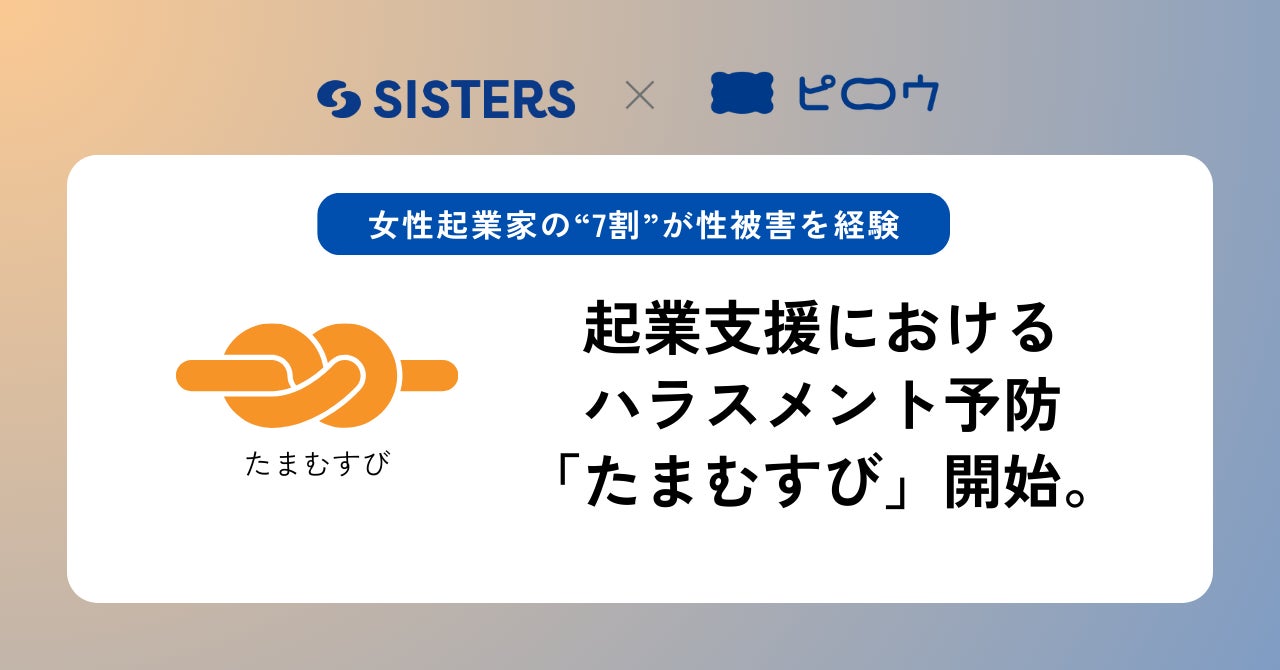 株式会社SISTERS(本社:東京都新宿区、代表取締役:鈴木彩衣音)と、非営利株式会社ピロウ(本社:東京都文京区、代表取締役:江連千佳)は、起業支援の場におけるハラスメント予防、研修・ガイドライン制作・相談窓口設置を支援し、構造的変化に向けて政策提言に取り組む「たまむすびプロジェクト」を共同で開始いたしました。