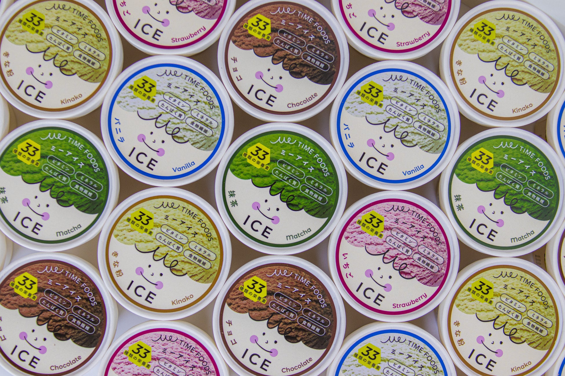 ミーアイスは、厚生労働省が定める「日本人の食事摂取基準」に基づき、33種類の栄養素を配合した完全栄養アイスです。