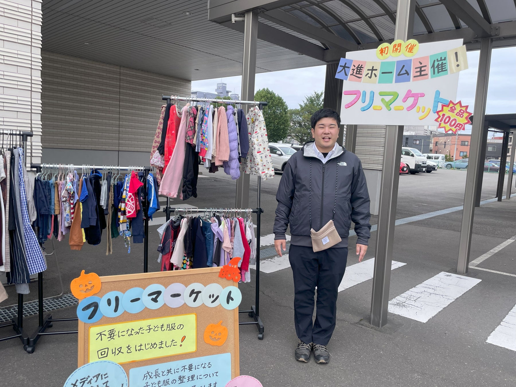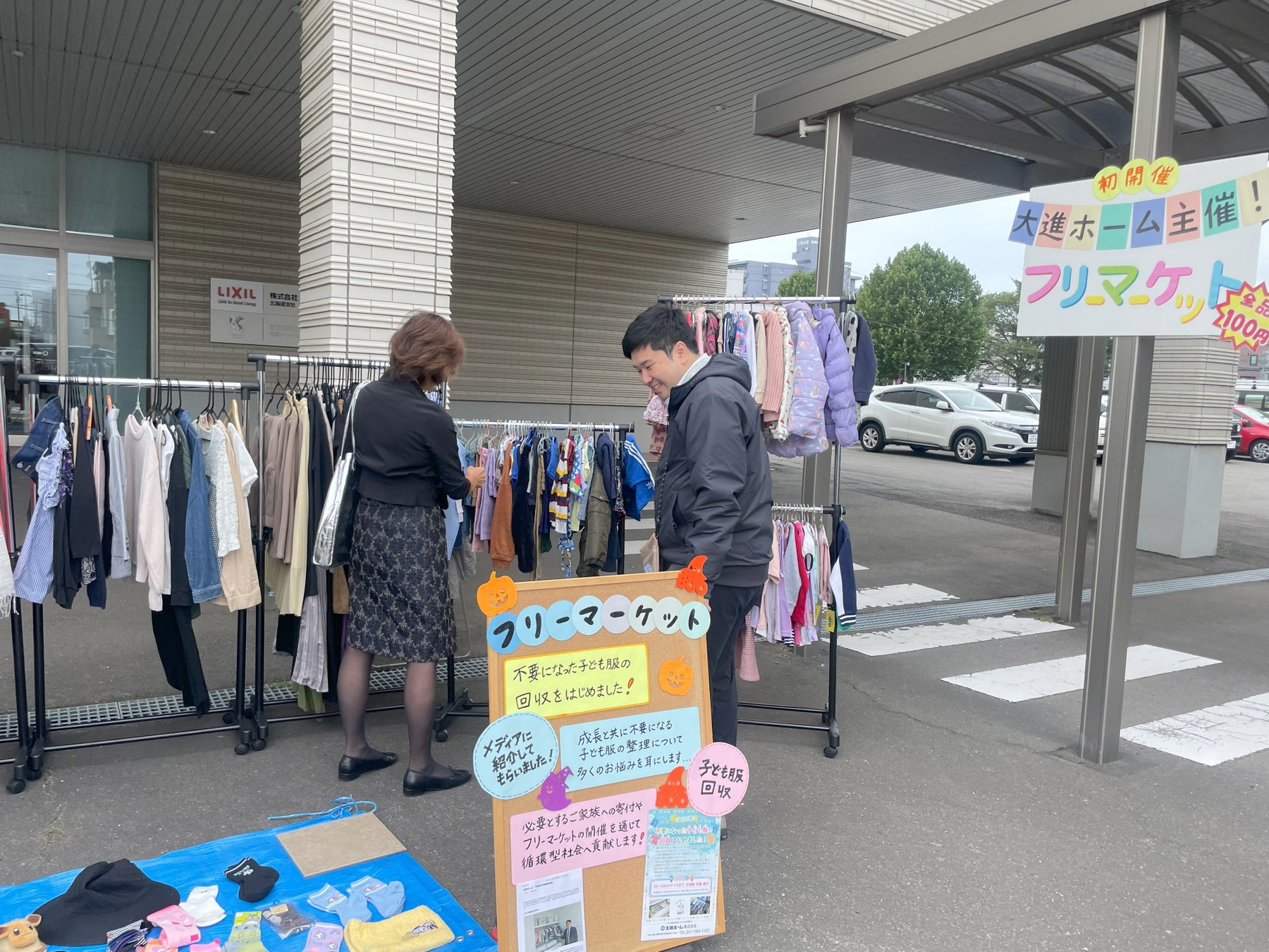 フリーマーケットでは新品同様の子どものアウターが人気で、2日間でほぼ売り切れとなりました。イベントが開催された週末の札幌は朝の最低気温が11.2度と冷え込んだこともあり、長袖や冬用の衣類を探す来場者でにぎわい、2日間の売り上げ金額は5,800円に達しました。この売り上げは全額、子育て支援団体へ寄付いたします。(寄付先は決定後に大進ホーム株式会社のコーポレートサイトにて広報室よりご報告させていただきます)