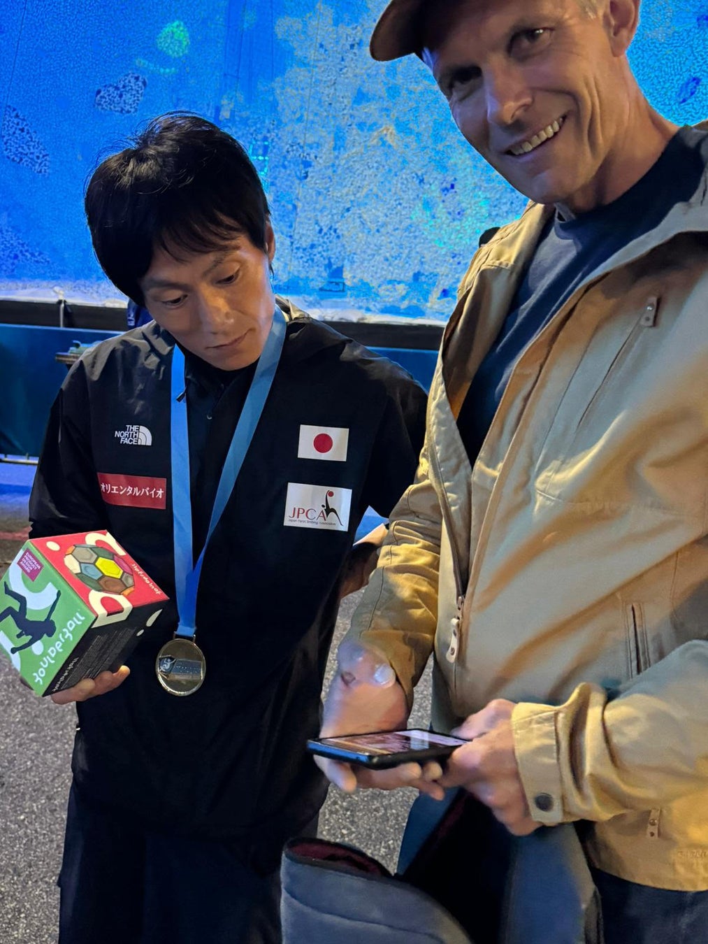 プロパラクライマーの高野正選手は、開発メンバーである同じくプロパラクライマーのデヴィッド・カマーさんを通じて、BoulderballのCEOであるディーターさんと知り合いました。初めてディーターさんとお会いしたのは、インスブルックでのことでした。その後、2024年9月27日と28日にイタリア・アルコで開催されたIFSCパラクライミングワールドカップで金メダルを獲得した高野選手は、現地でディーターさんと2度目の再会を果たし、TEAMCLIMBをプレゼントしました。また、高野選手とデヴィッド・カマーさんは友人関係にあり、親しい交流を続けています。