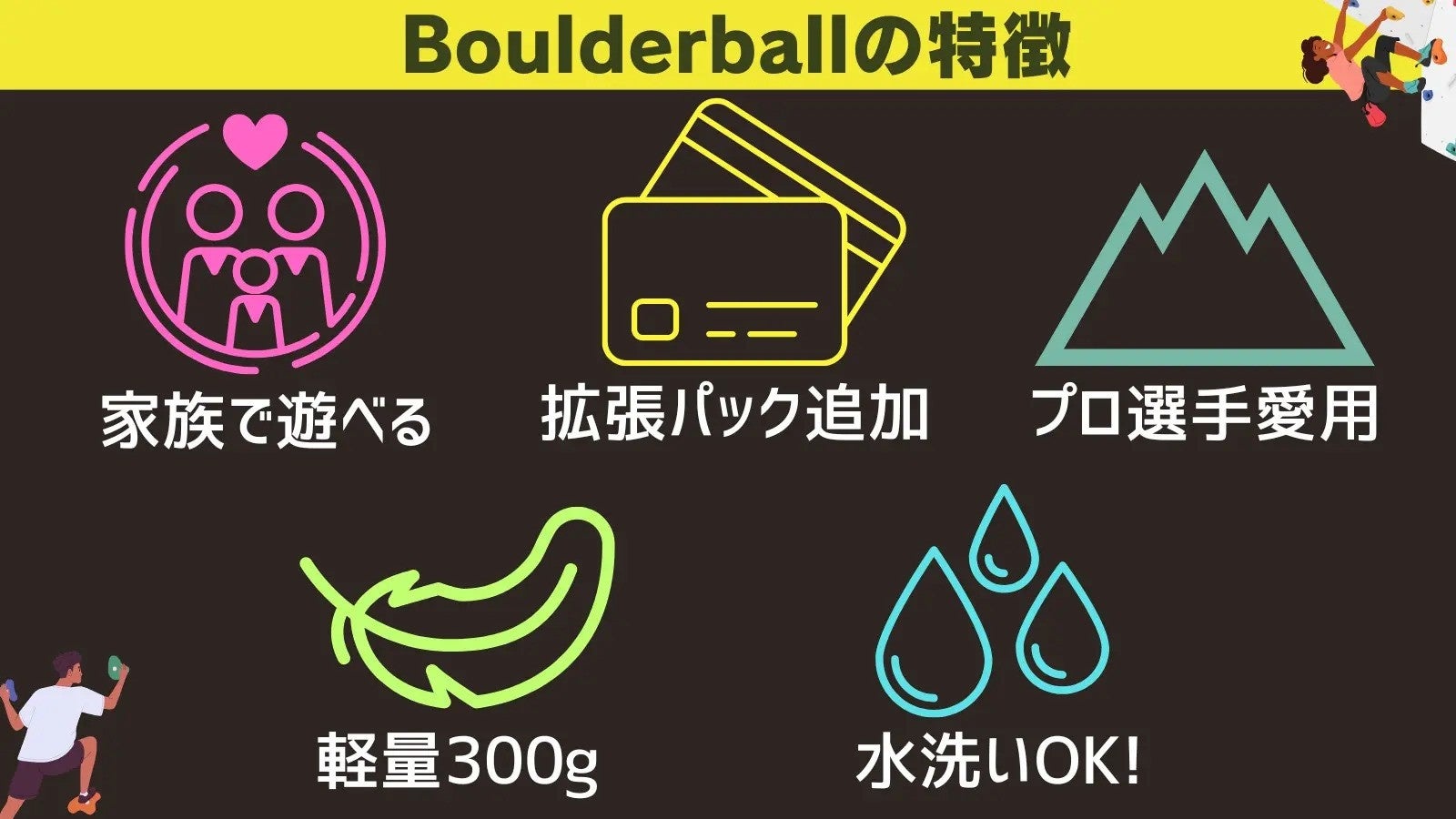 今回の製品は、初心者にも扱いやすく、また熟練者のトレーニングにも対応できるよう設計されており、ボルダリング愛好者の幅広いニーズに応えるものとなっています。スポーツとしての魅力をさらに引き出すBoulderballの商品が、今後のボルダリングシーンをより豊かにすることを期待しています。