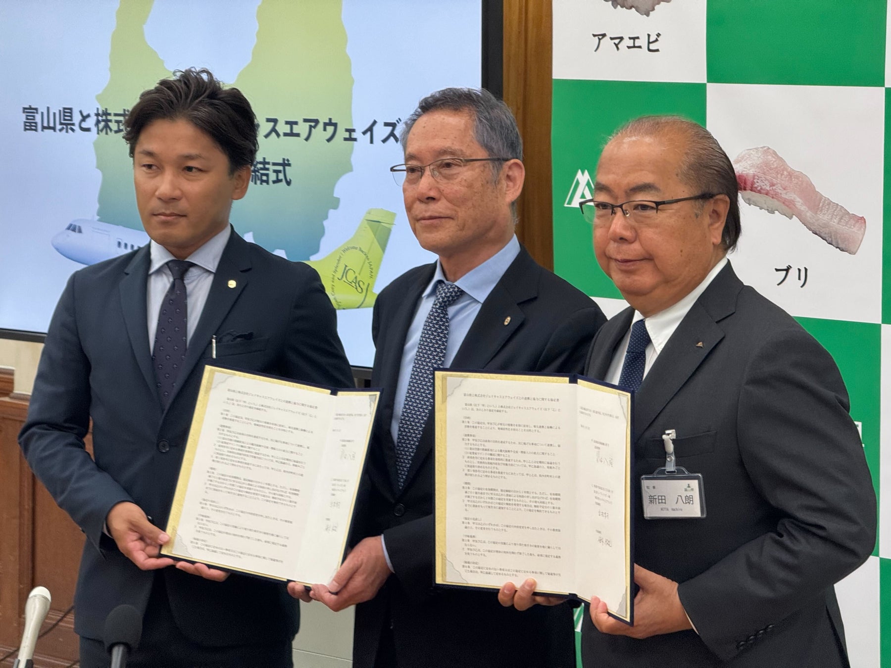 2026年春の新規就航を目指す株式会社ジェイキャスエアウェイズ(本社:東京都千代田区、代表取締役白根 清司・梅本 祐紀、以下「当社」)と富山県(知事:新田 八朗)は、地域社会の活性化を目的とした連携協定を締結し、締結式を2024年11月13日(水)に行いました。