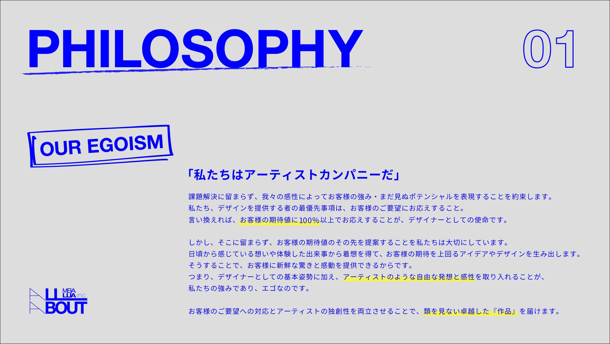 MEIALUAの中核をなす「アーティストとしての自身の考え」と「伴走者としての責任」を新たに定義。