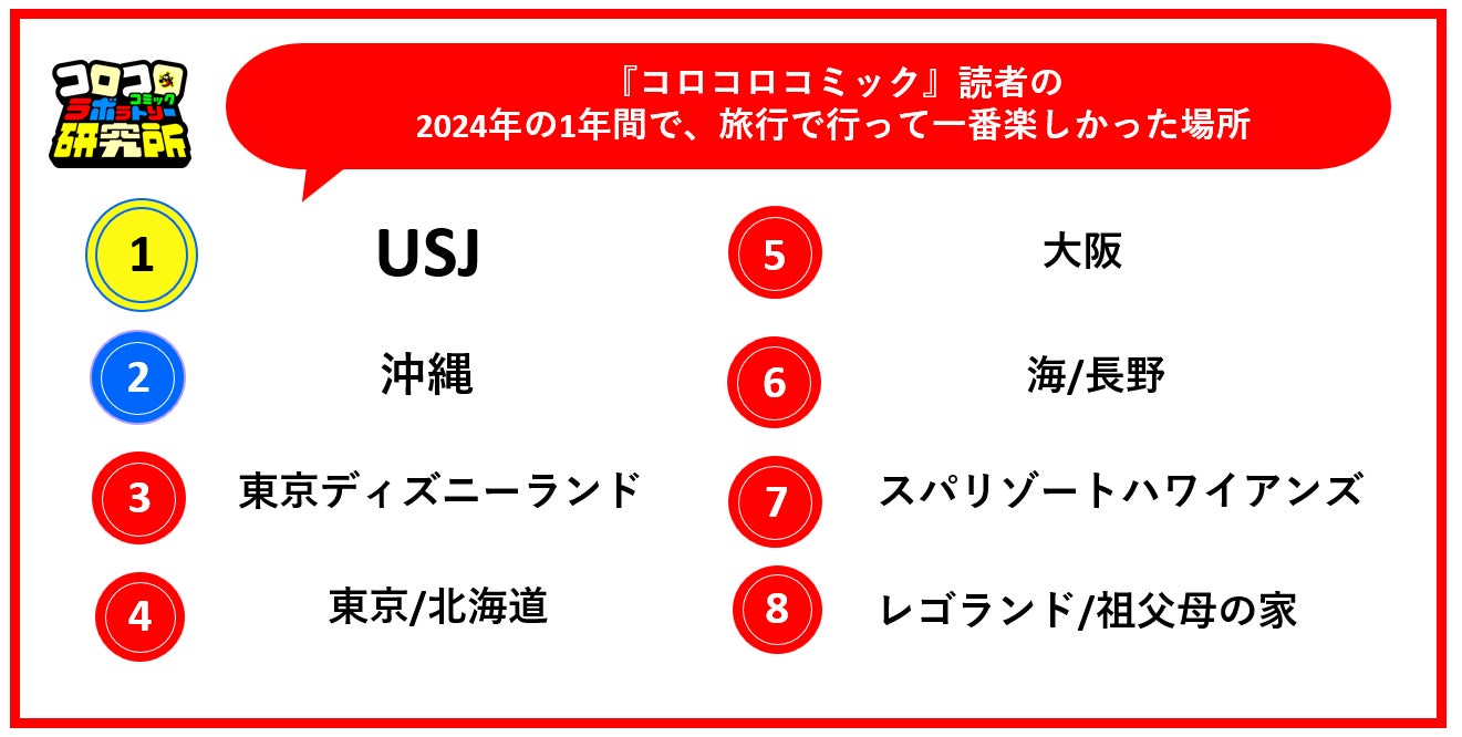 今年も残りあとわずか!『コロコロコミック研究所』、男子小学生1000名に聞いた、2024年で一番楽しかった旅行先ランキング