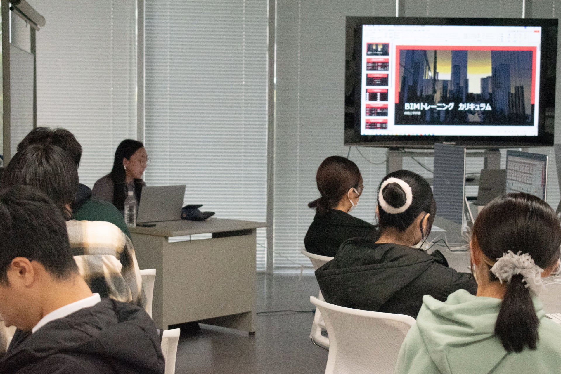 本講義では、Autodesk社が提供するBIMソフトウェア「Revit」を使用し、建築建材とBIMをつなげるプロセスを、理工系分野の学生計12名に体験してもらいました。