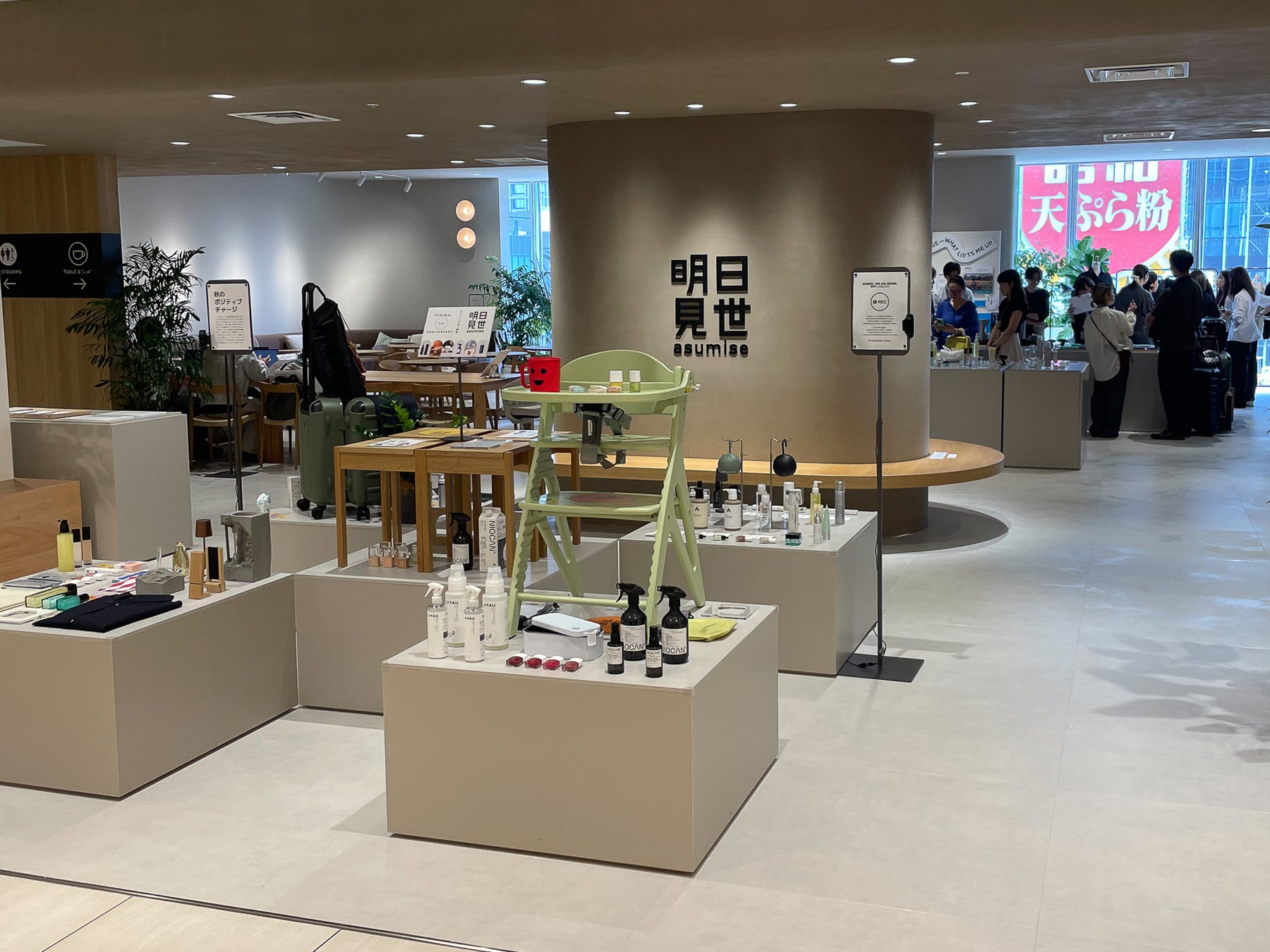 「明日見世」は、商品・ブランド体験、カフェ、イベント、お買い物が楽しめる、複合型体験ストアです。毎シーズン300以上のブランドから厳選した、人・地域・自然の未来をつくるアイテムを提案しています。