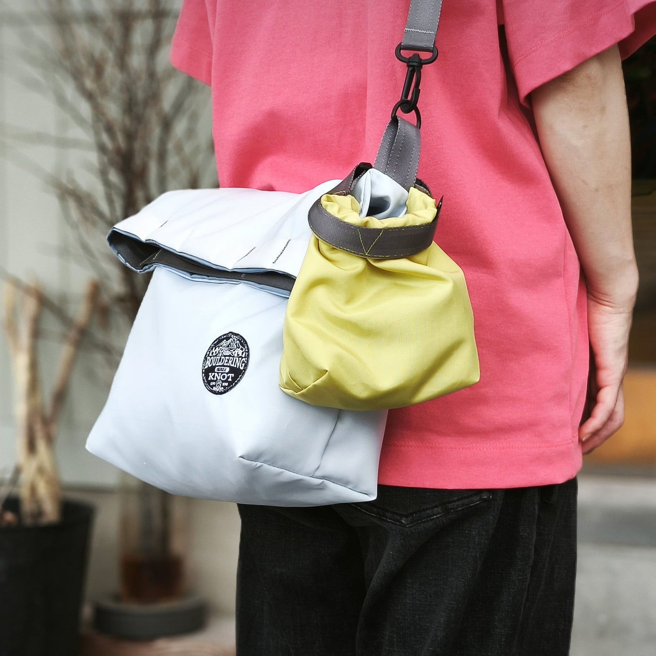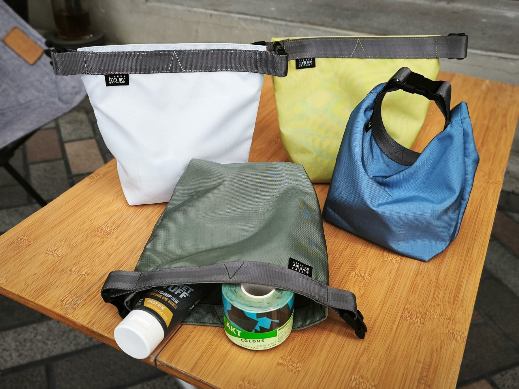 ボルダリング用のチョークや小物を入れるのに最適なサイズで、バッグインバッグとしても活躍します。シリコンコーティングされたエアバッグ生地は耐久性抜群で、キャンプや登山などアウトドアシーンにも最適です。