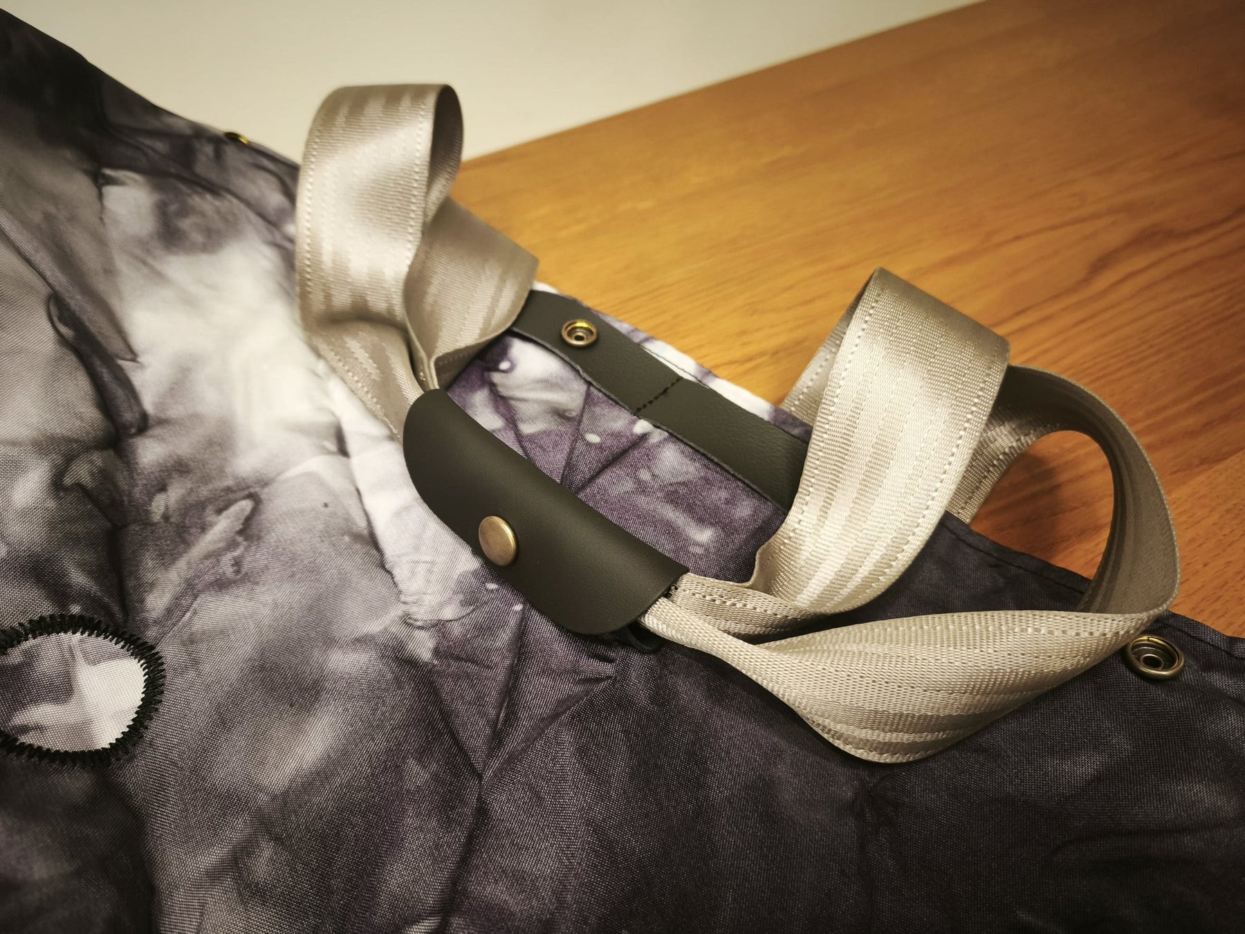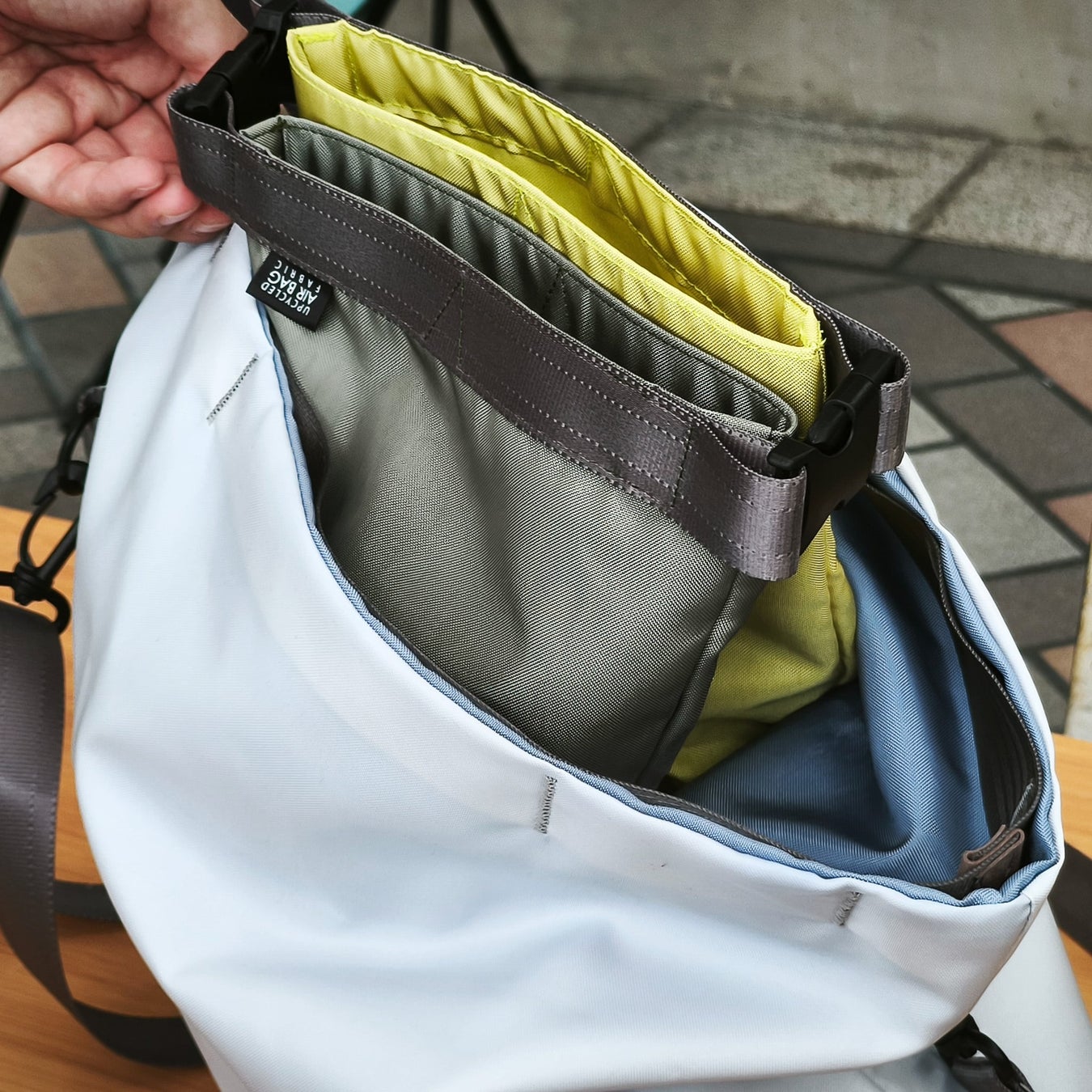 バッグ本体に使用されているのは、命を守るために設計されたエアバッグ用の生地。起爆に耐える高強度と330gという軽さを両立し、日常づかいに頼れるタフさを備えています。