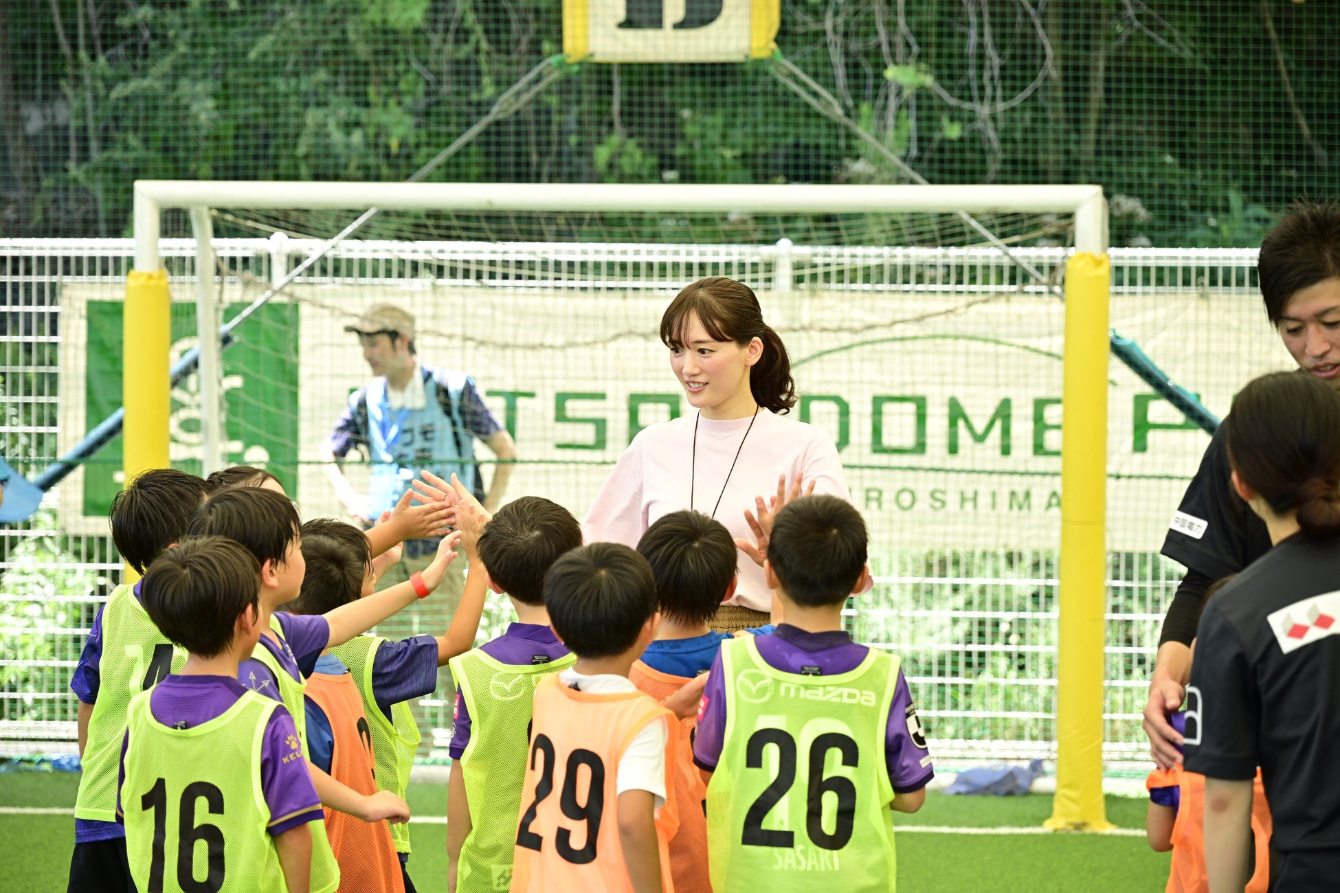 地元広島出身の 綾瀬 はるか さんが「ドコモ未来フィールドの応援サポーター」としてゲスト参加 元Jリーガーで現チームスタッフの森﨑 和幸氏とともに、子どもたちの夢を応援!