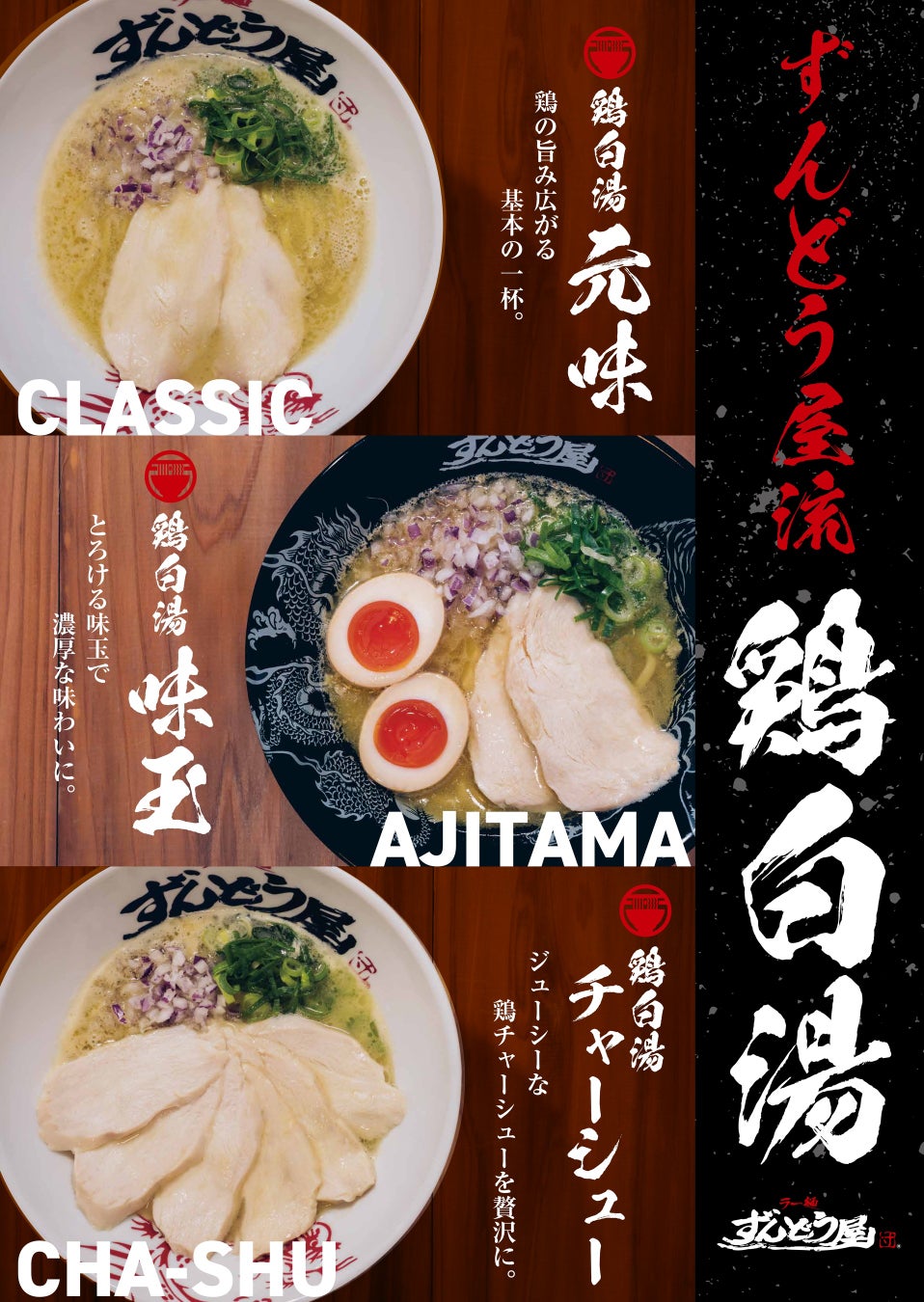 さらに今年から、「元味」「味玉」「チャーシュー」と3つのラインアップをご用意しています。定番の豚骨とはひと味違う、新しい「ラー麺ずんどう屋」の味を、ぜひこの機会にお楽しみください。