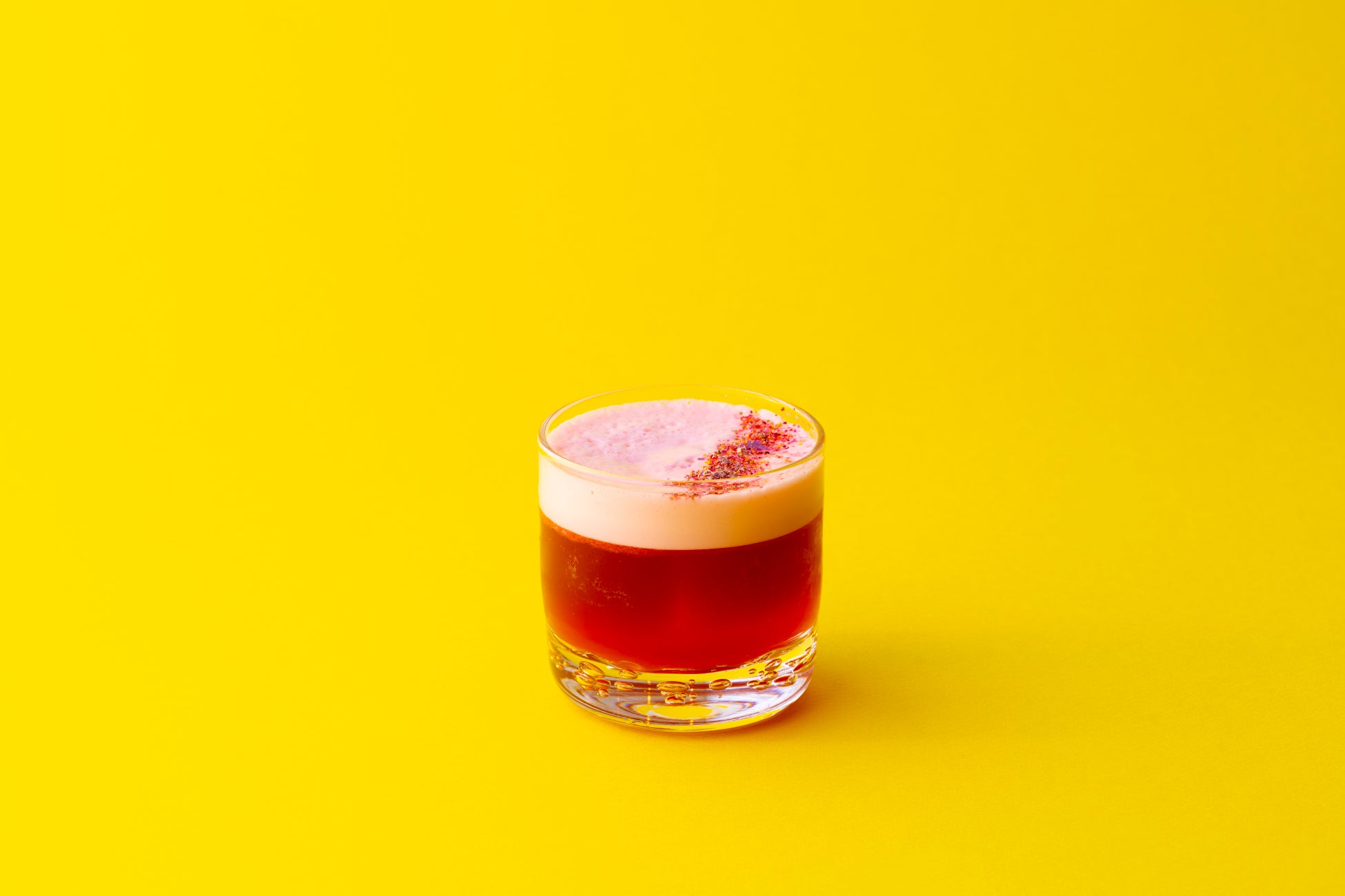 春の訪れを感じさせる2トーンの赤色が特徴のカクテル。チェリーリキュールの甘酸っぱさと赤ワインの深みが絶妙に調和し、春の温かさを感じさせる一杯です。仕上げに春の象徴であるバラを添えて、華やかさとともに春らしい風味を引き立てます。