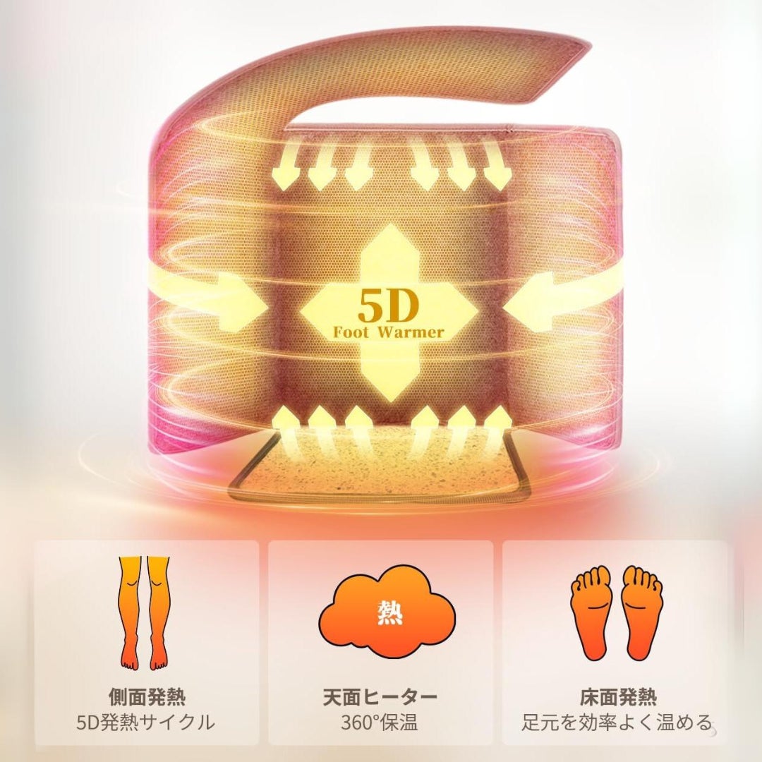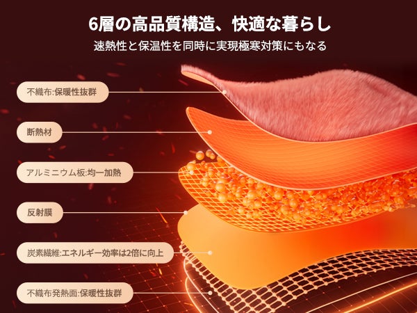 YUSIDO「5Dパネルヒーター」は、パネル面積を広げ、さらに5方向からの熱放射を可能にすることで、より広範囲かつ短時間で快適な暖かさを実現しました。コストは20%上昇しましたが、発熱量は50%増加し、わずか45秒で加熱が始まります。