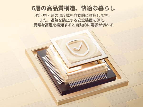 ①しっかりとした6層構造により、速熱性と保温性に優れ、安全性も高めています。やけどしにくい表面温度設計で、安心してご使用いただけます。