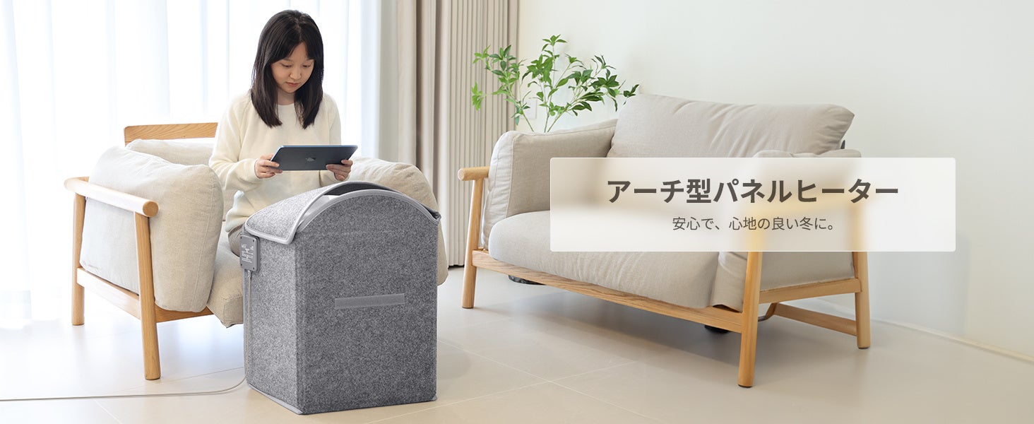 パネルヒーターは輻射熱を利用して空間をじんわりとあたためる暖房器具であります。燃料を燃やさないことで空気を汚さず、送風機能を使わないため肌や喉が乾燥しにくいのが大きな特長です。