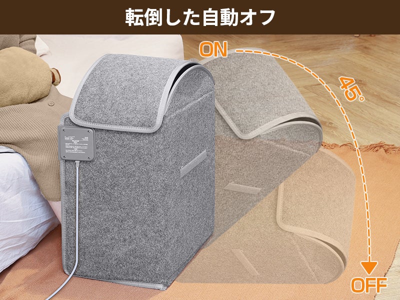 ②45°以上の転倒時には自動的に電源がオフになり、ペットやお子様が誤って押し倒した場合や地震が起きた際も安心です。