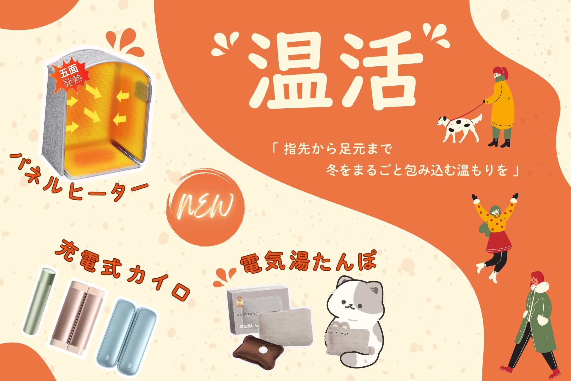 秋の訪れとともに、空気が冷たくなってきました。このたび、宏達株式会社は冬の「温活」をテーマに、蓄熱式電気湯たんぽ、充電式カイロ、パネルヒーターなど、冬に役立つあたたかグッズをご紹介いたします。温かさを実感し、心地よい冬をお楽しみください。