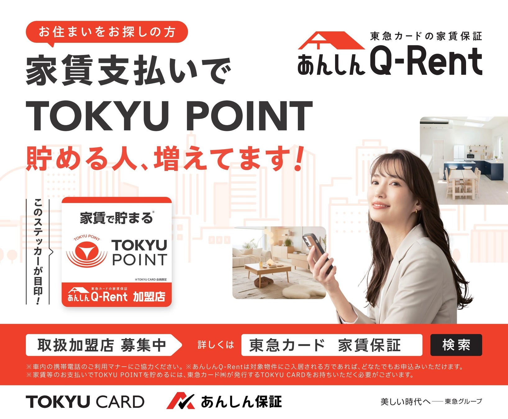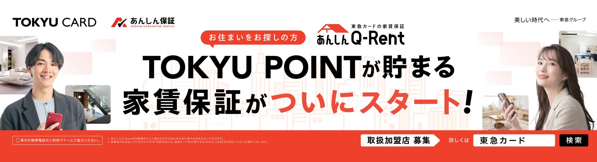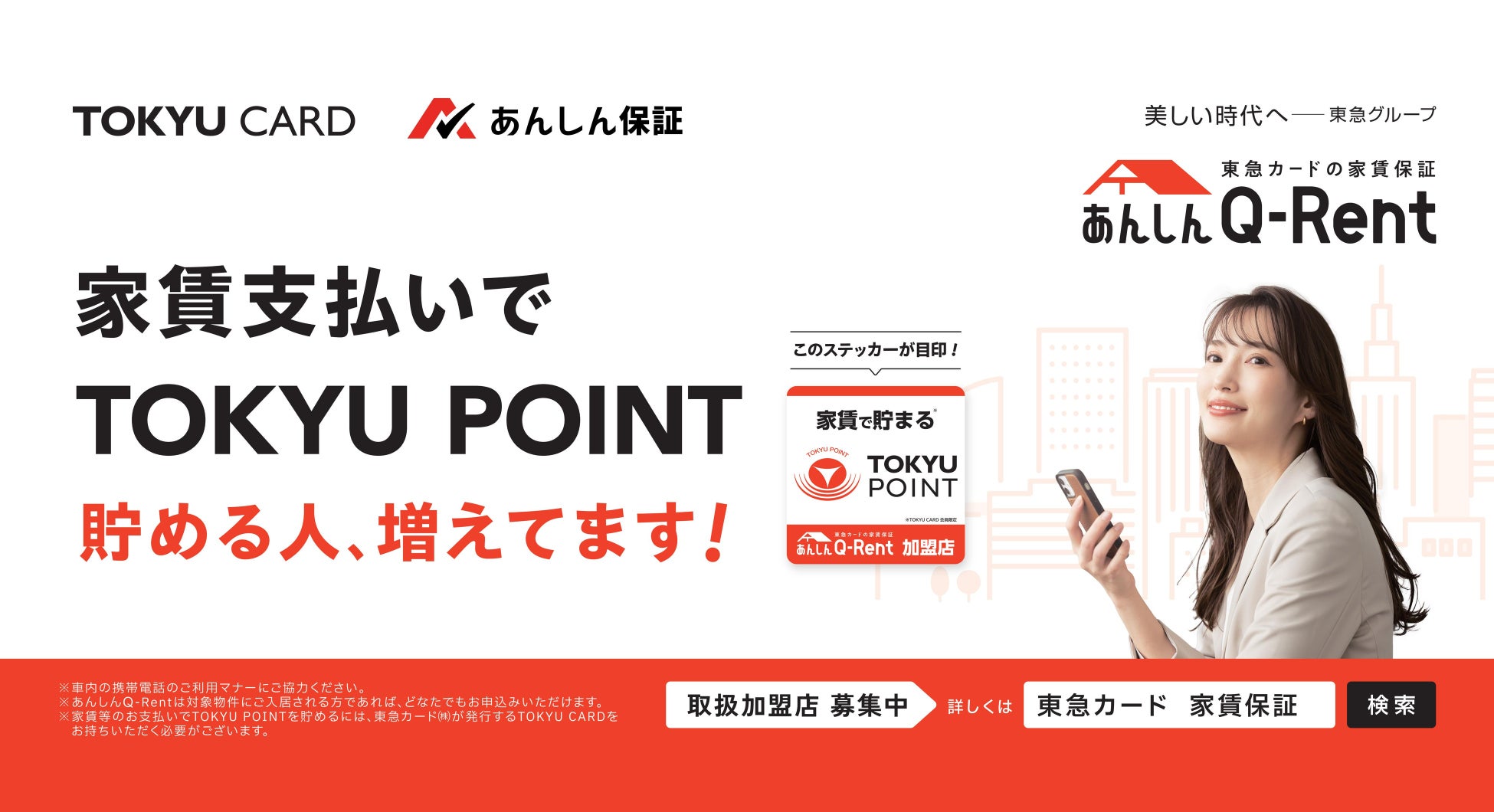 あんしん保証株式会社(以下、「あんしん保証」)は、東急カード株式会社(以下、「東急カード」)と共同でTOKYU POINTが貯まる家賃保証サービス「あんしんQ-Rent」を提供中です。
