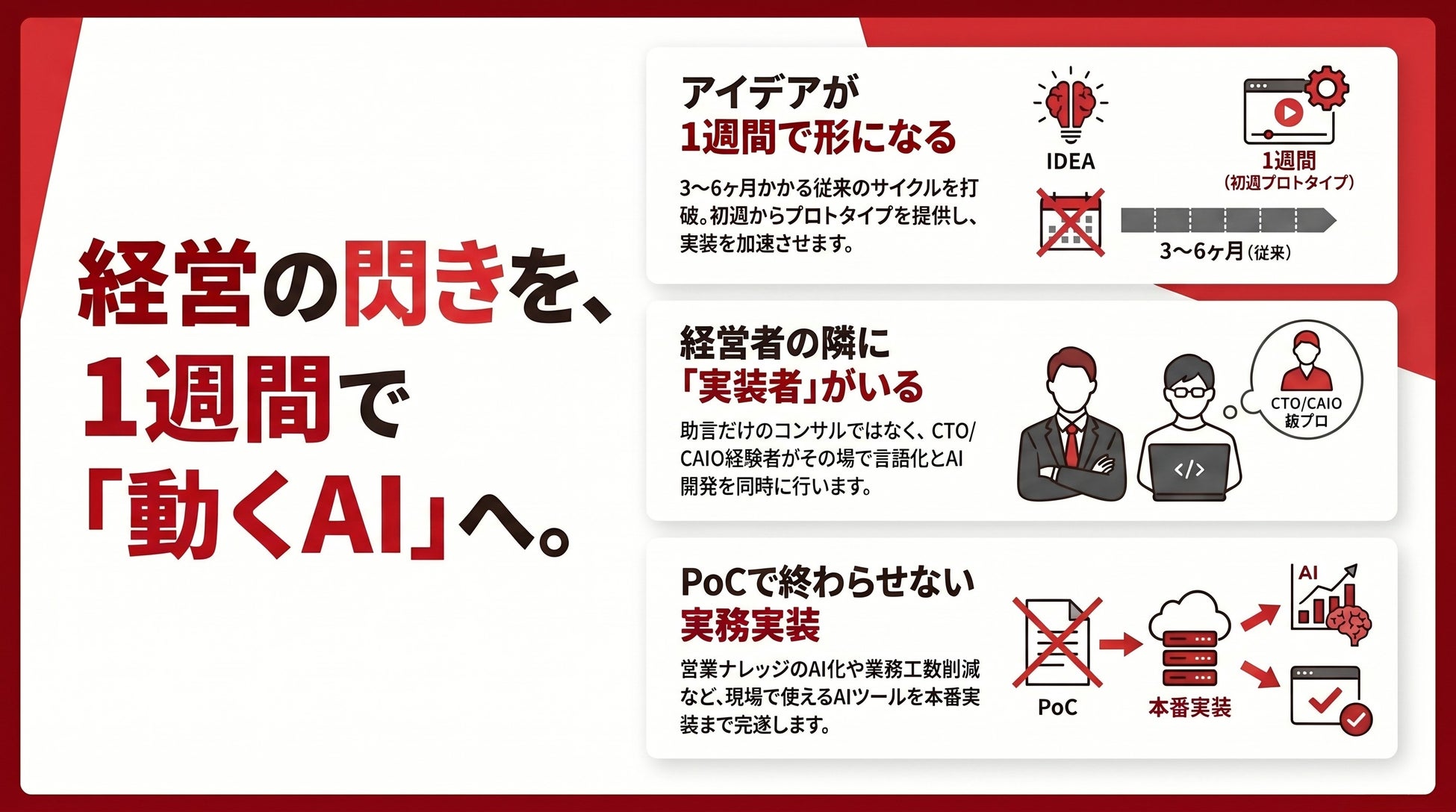 ― CTO/CAIO経験者が経営者の隣で即実装。中堅企業のAI推進を加速する ―