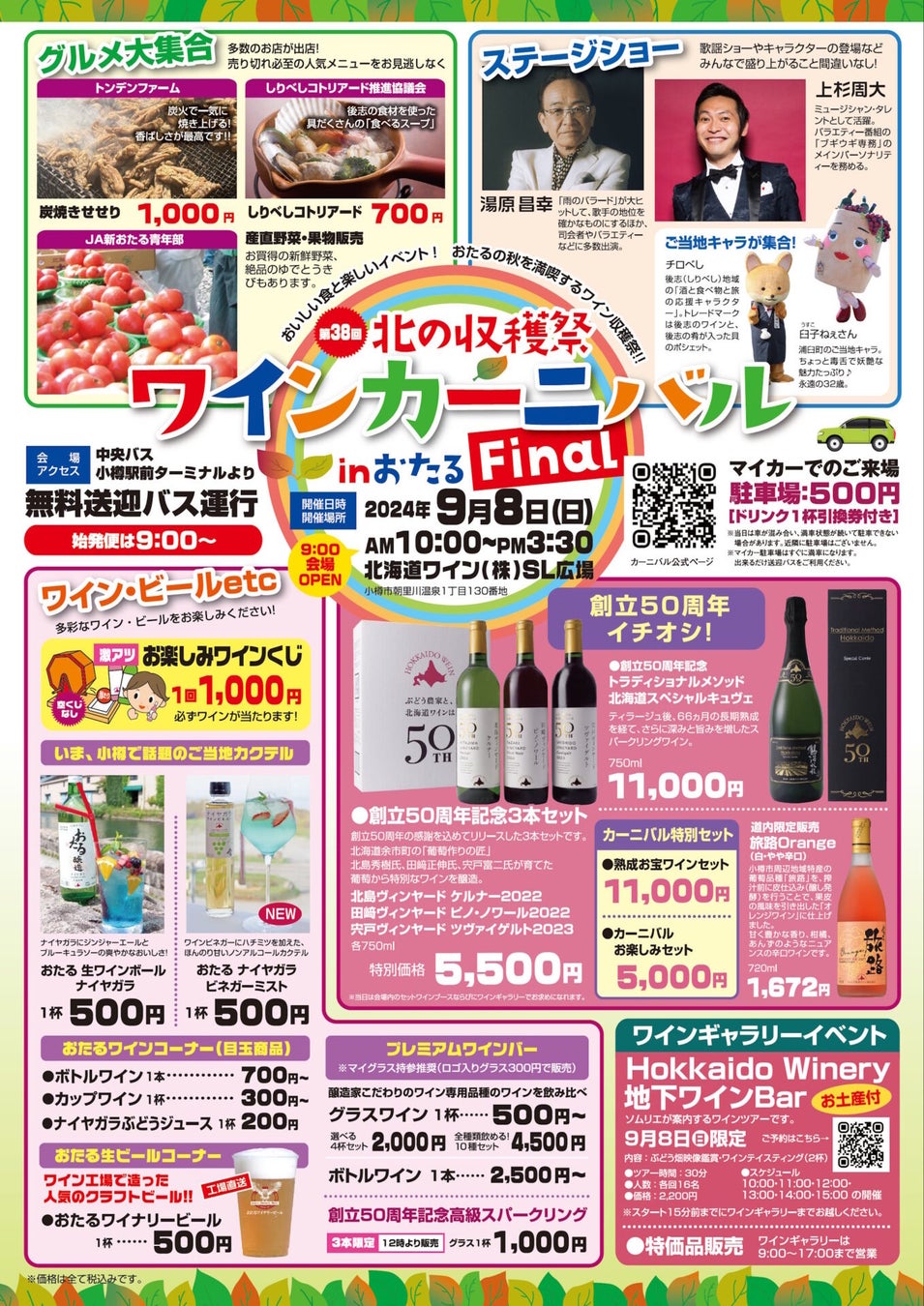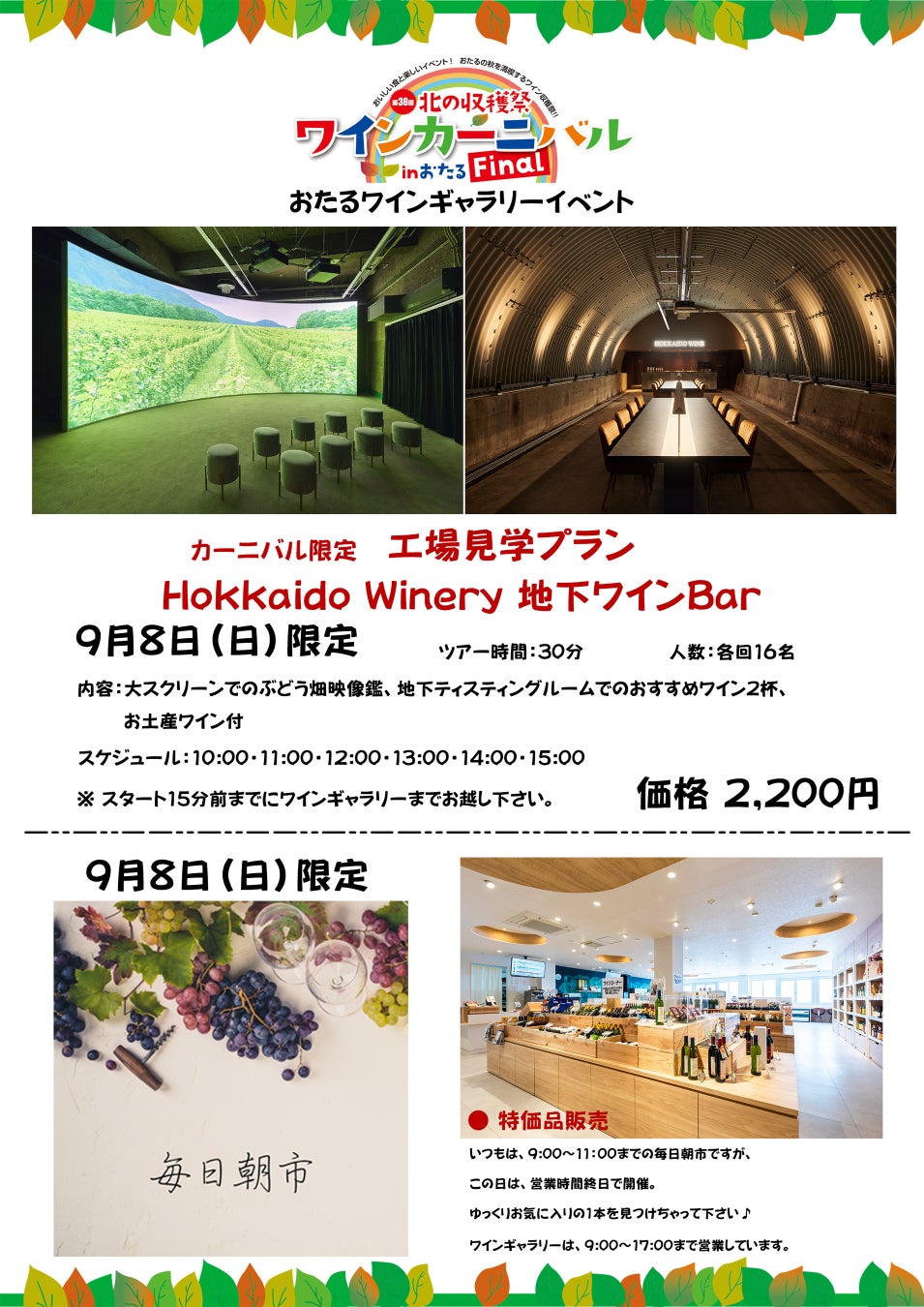 北海道ワイン株式会社自主イベント、『第38回北の収穫祭 ワインカーニバル inおたる [Final]』9月8日(日)開催!