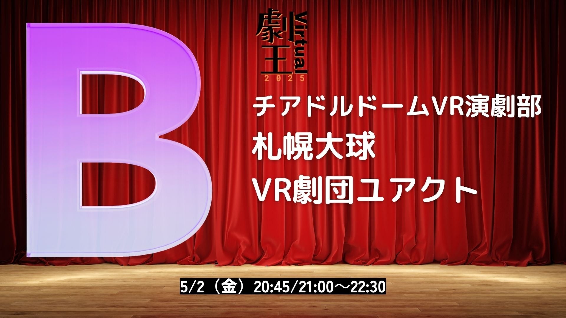 今大会は、VRSNS「VRChat」で開催されます。現実のの照明や舞台を緻密に再現した会場にアバター姿の役者が演技を披露します。エントリー数は総勢15団体。5/2(金)に予選大会を、5/3(土)に決勝大会を実施いたします。