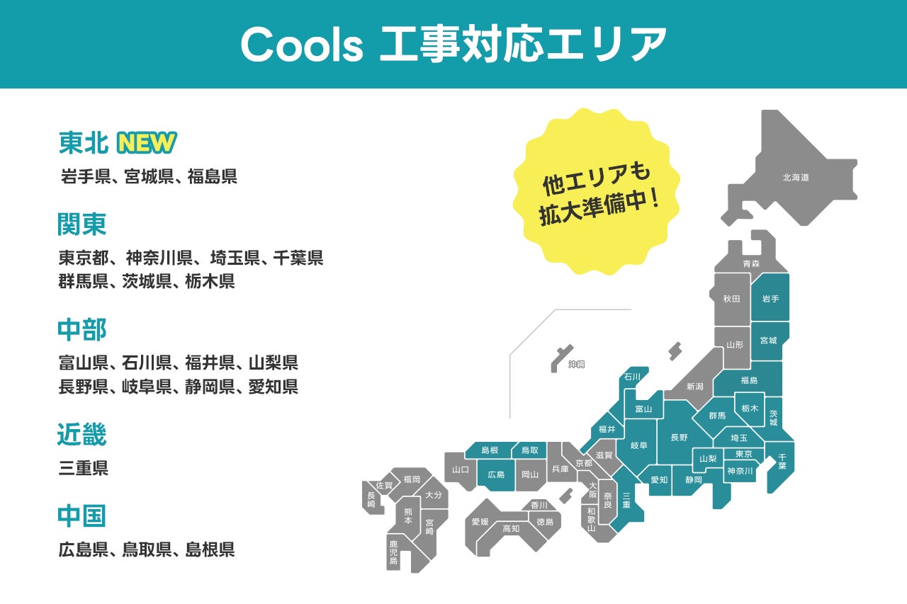 住宅設備の専門店・株式会社Cools、『エコキュート』の工事対応エリアをまたまた拡大!東北地方へ進出