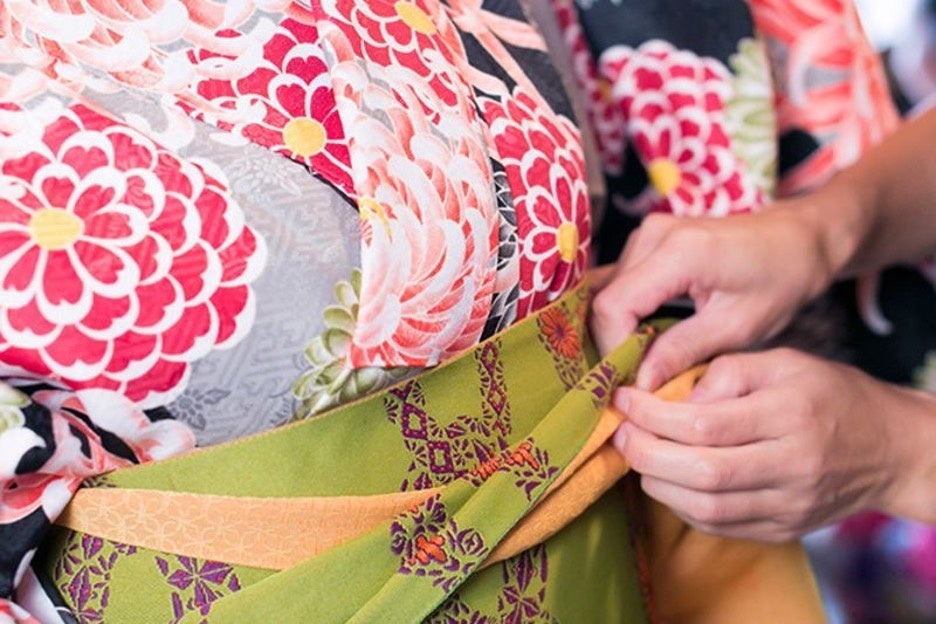 お部屋で着付けて、お着物で街を散策することができます。着物・帯・草履・足袋・かばんがセットに含まれており、足袋はそのままプレゼントさせていただきます。また女性限定で、ヘアセットもサービス(髪飾り付)しております。