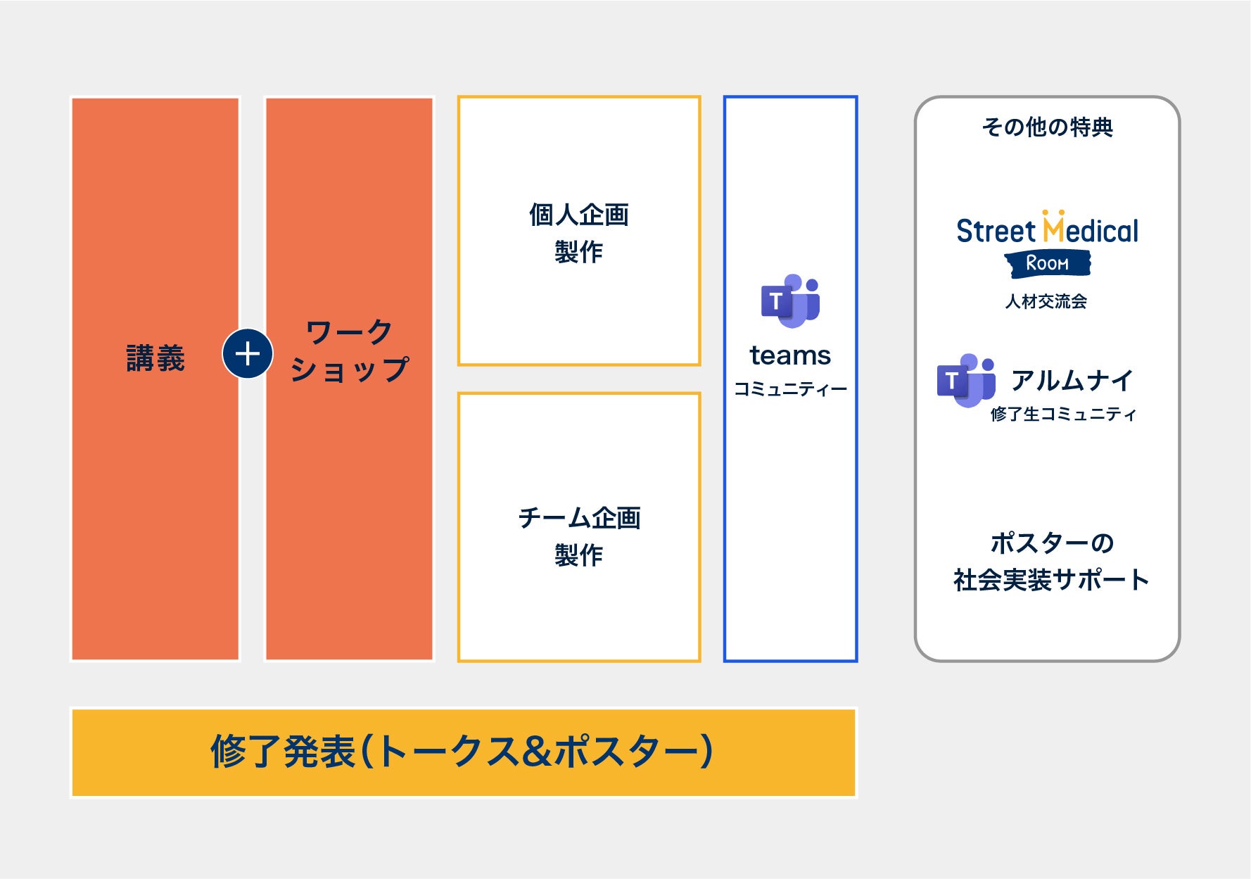 講義時間 : 16:00~18 :00(WS時18時30分まで / 修了発表会14:00~17:00に開催)