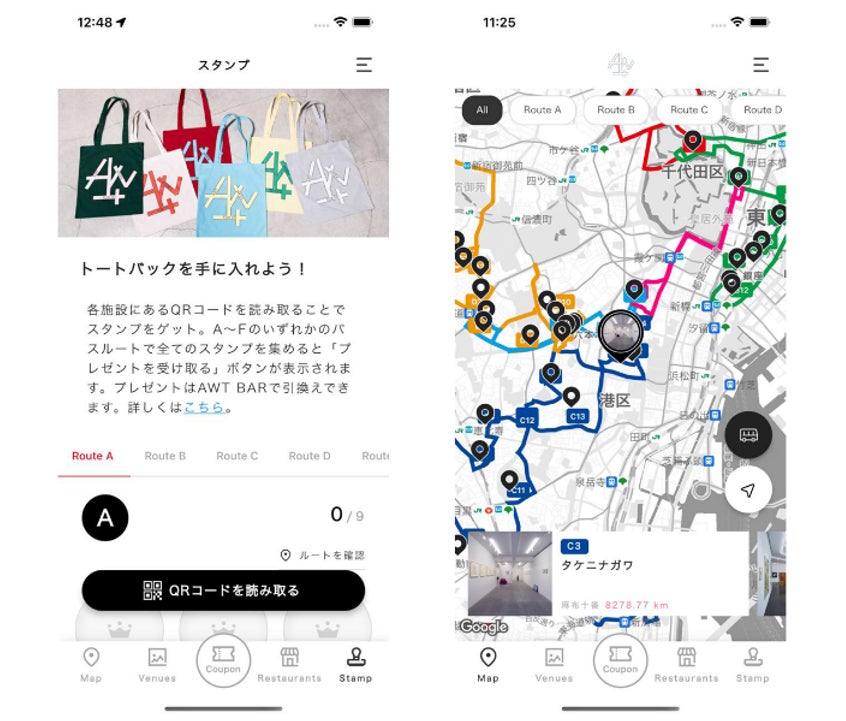 国内のアートイベントでの体験をサポートする無料アプリ「japan ART EX」を使えば、アートウィーク東京がもっと楽しく、もっと便利に。「MAP」による AWT BUS のルート確認や参加施設の情報⼊⼿、 限定クーポンなどを提供します。また、AWT の会期中はアプリを使ったスタンプラリーも開催。AWT 参加施設にある QR コードを読み取ることでスタンプをゲットできます。6 つのバスルートのいずれか 1 ル ートでスタンプを全部集めた⽅には、オリジナルのトートバッグのプレゼントが。ぜひご参加ください。