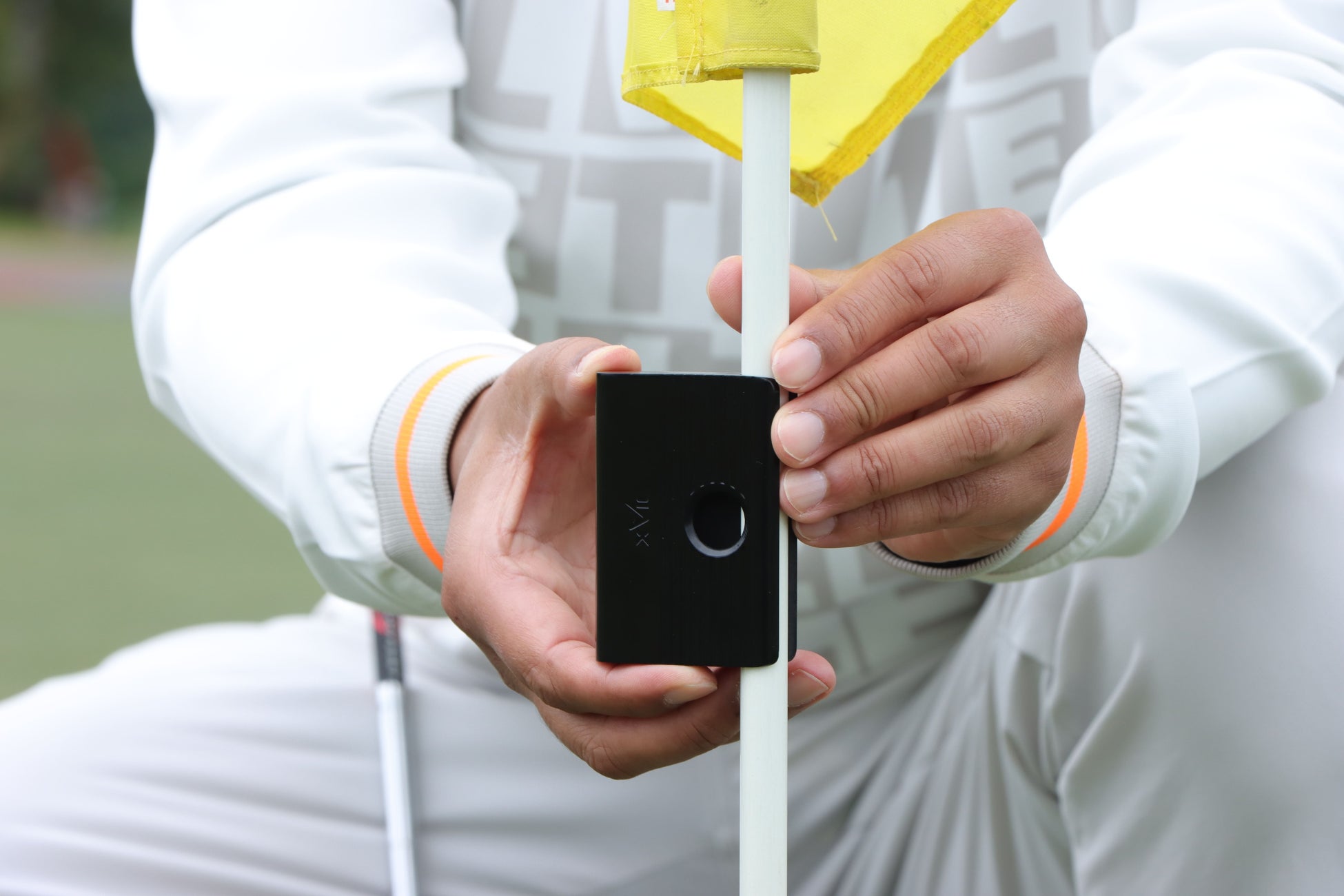 正しい距離を知り、距離に合わせて振り幅を調整したパット練習を地道に重ねると1打目や2打目でカップインの成功率が上がります。グリーンビューはピンのスティック部分に挟むか、目標地点の地面に直置きでも距離が測定できます。普段の自主練でパターマットやラインがない状況でもグリーンビューで距離を計り、距離別の練習が可能です。
