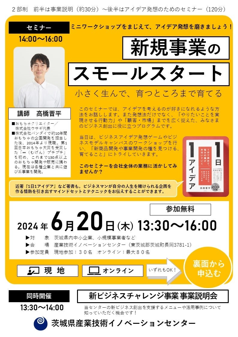 セミナー 『新規事業のスモールスタート~小さく生んで、育つところまで育てる~』