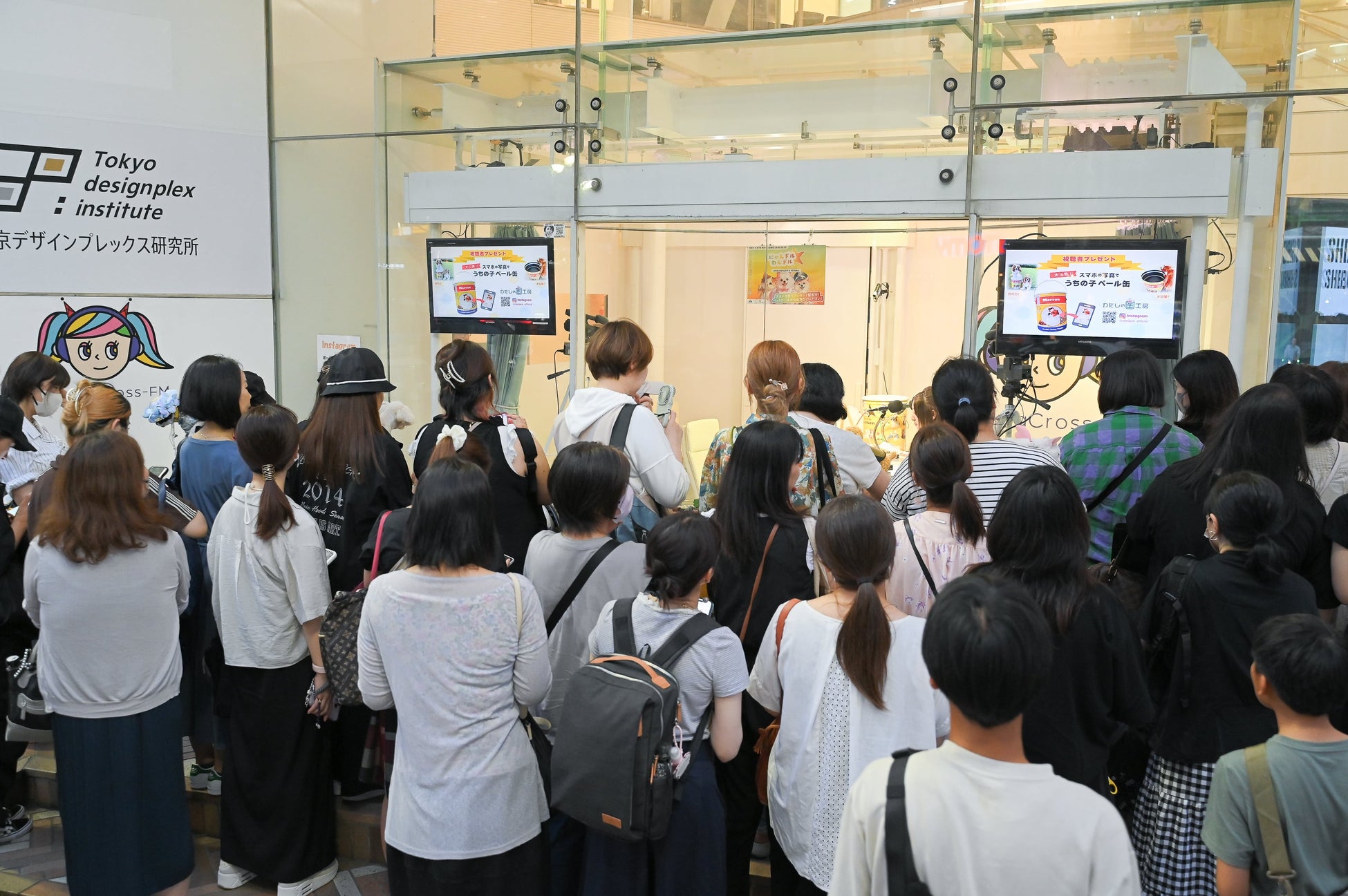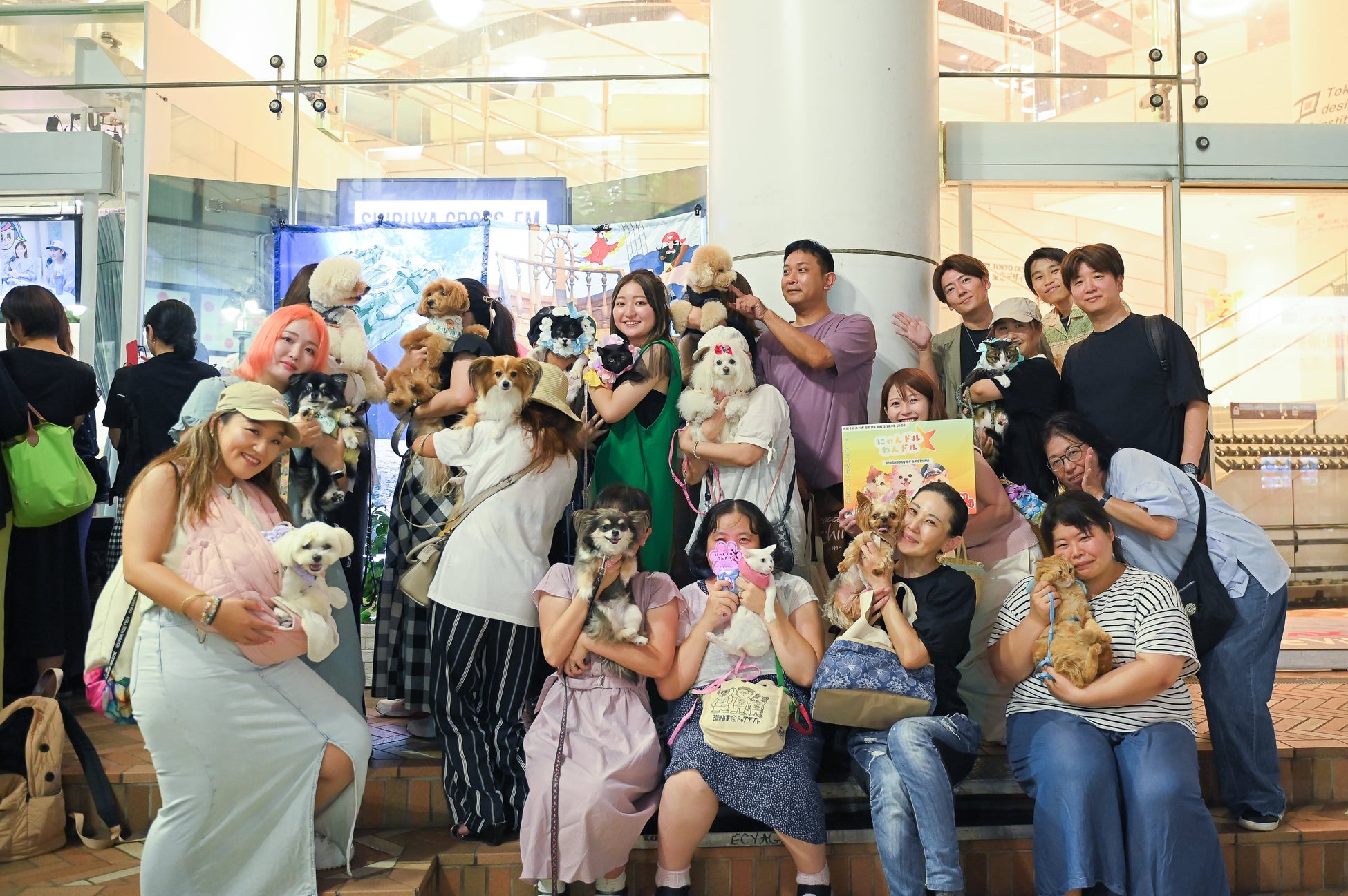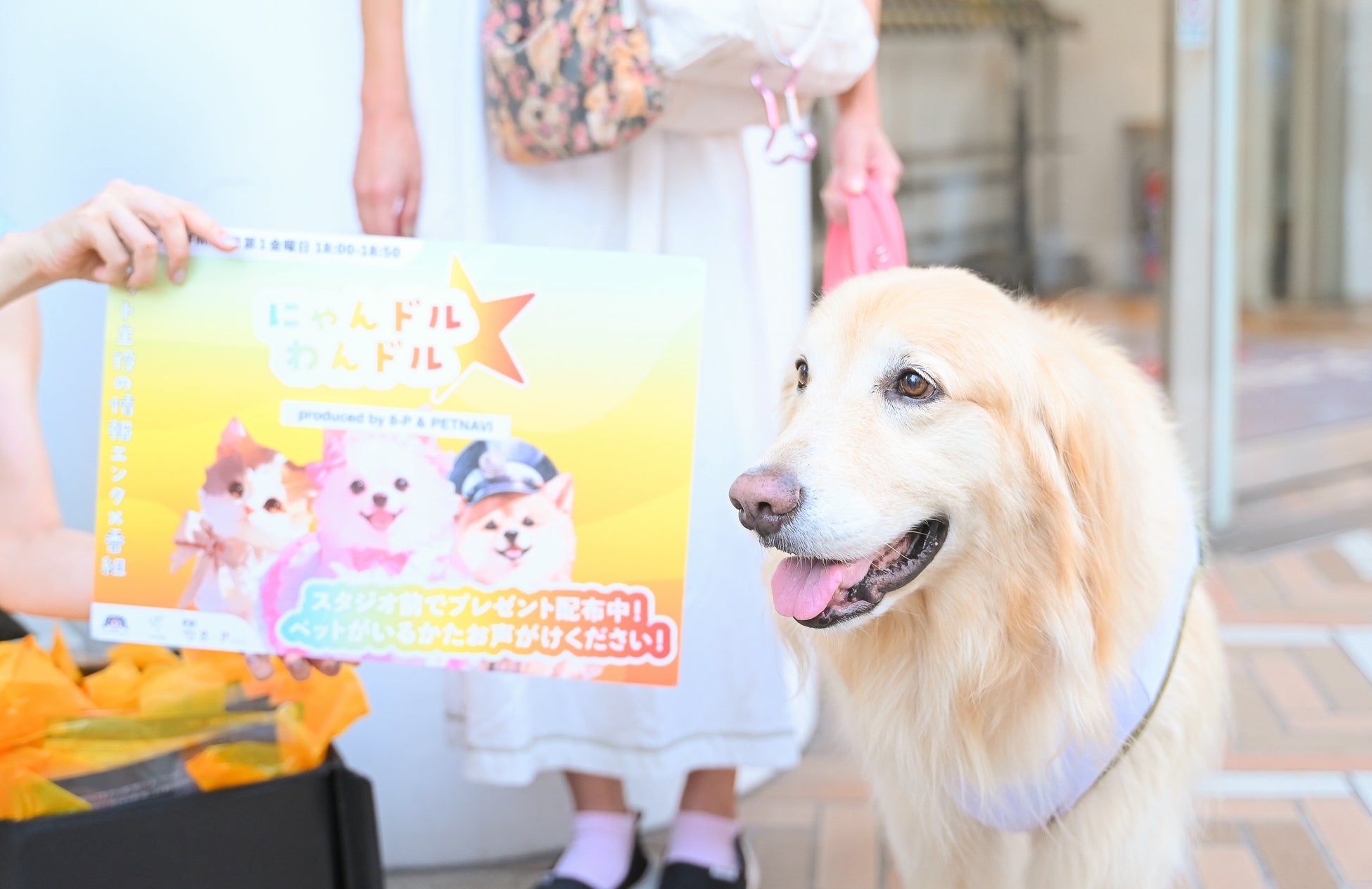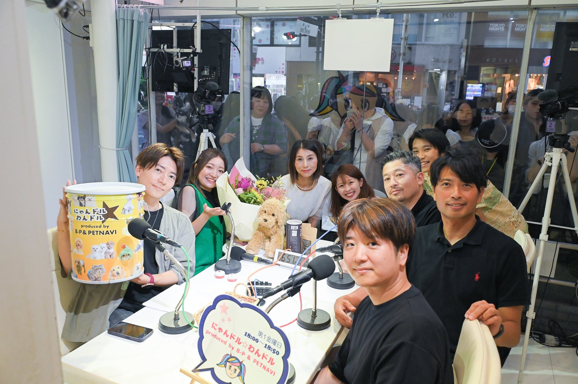 番組を放送している「渋谷クロスFM」のサテライトスタジオはガラス張りで、視聴者の皆さんも間近で放送を楽しむことができます。これまでの放送でも、多くの飼い主さんがわんちゃんや猫ちゃんと一緒にスタジオ前に訪れ、番組を盛り上げてくださいました。また、スタジオ前では、番組で紹介した商品のサンプルも配布しています。『にゃんドル☆わんドル produced by 8-P & PETNAVI』は、これからも視聴者の皆さんと一緒に番組を盛り上げていきます。
