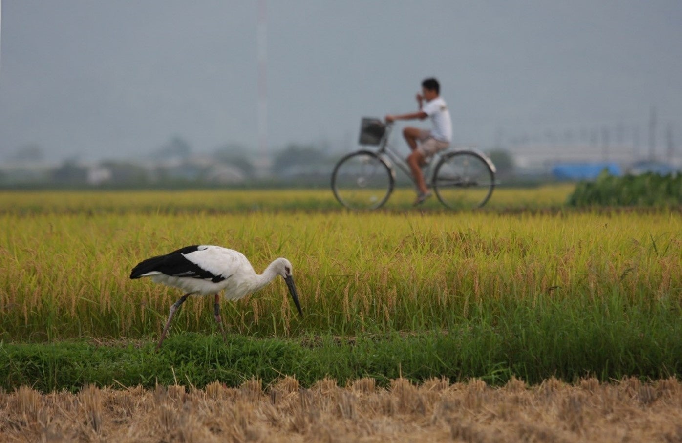 平成17年9月には、国指定の特別天然記念物・コウノトリが放鳥され、人里で野生復帰を目指す世界的にも例がない壮大な取組みが始まりました。