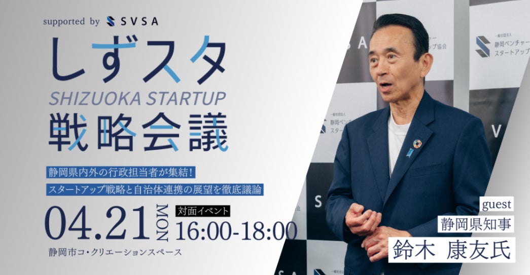 一般社団法人静岡ベンチャースタートアップ協会(代表理事:篠原豊、所在地:静岡県浜松市 以下、SVSA)は、静岡にゆかりのあるベンチャー及びスタートアップ企業の奨励や若手起業家の育成などを通じて、静岡県における起業文化発展を目指して活動しています。この度、静岡県全体のスタートアップ連携強化と起業家育成を加速させるため、静岡県内の行政関係者とスタートアップ企業が一堂に会し、「しずスタ戦略会議」を4月21日(月)に初開催することとなりましたのでお知らせします。