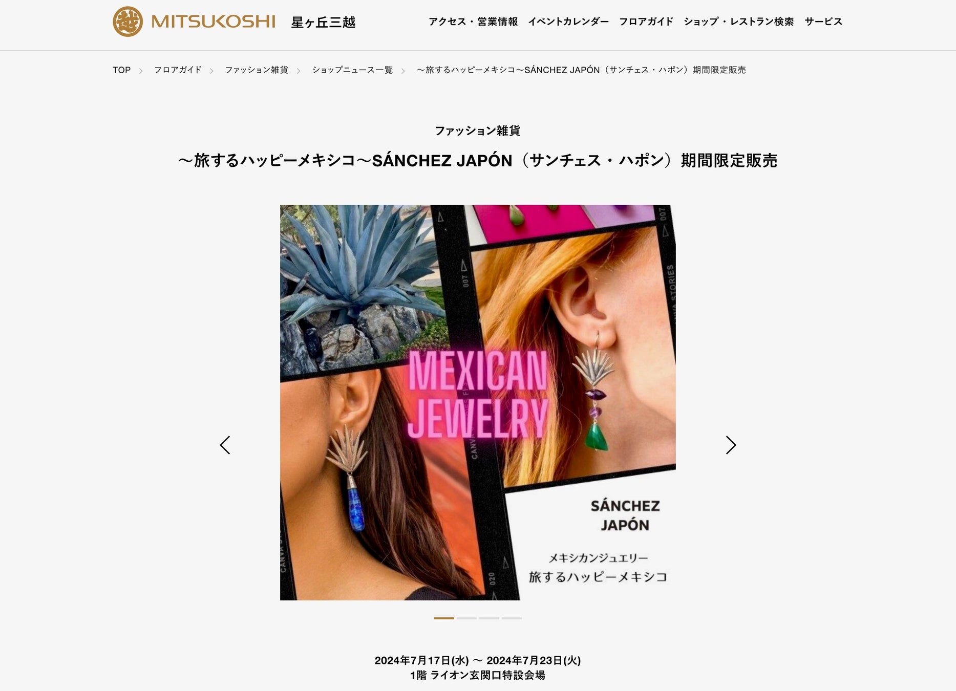 名古屋初上陸のメキシカンジュエリーブランド「SÁNCHEZ JAPÓN(サンチェス・ハポン)」が、星ヶ丘三越に2024年7月、期間限定で出店